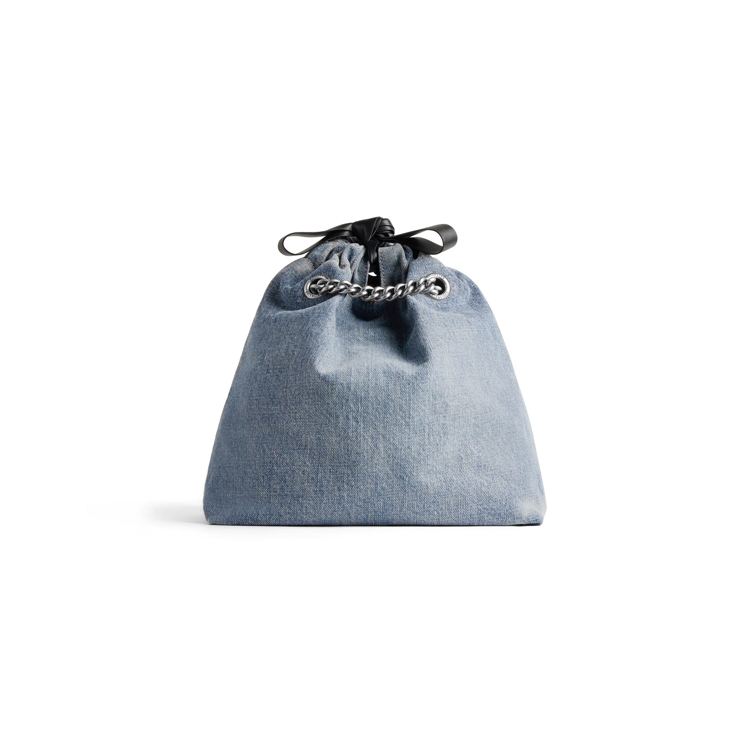 Crush Small Tote Bag in blue washed denim, aged-silver hardware