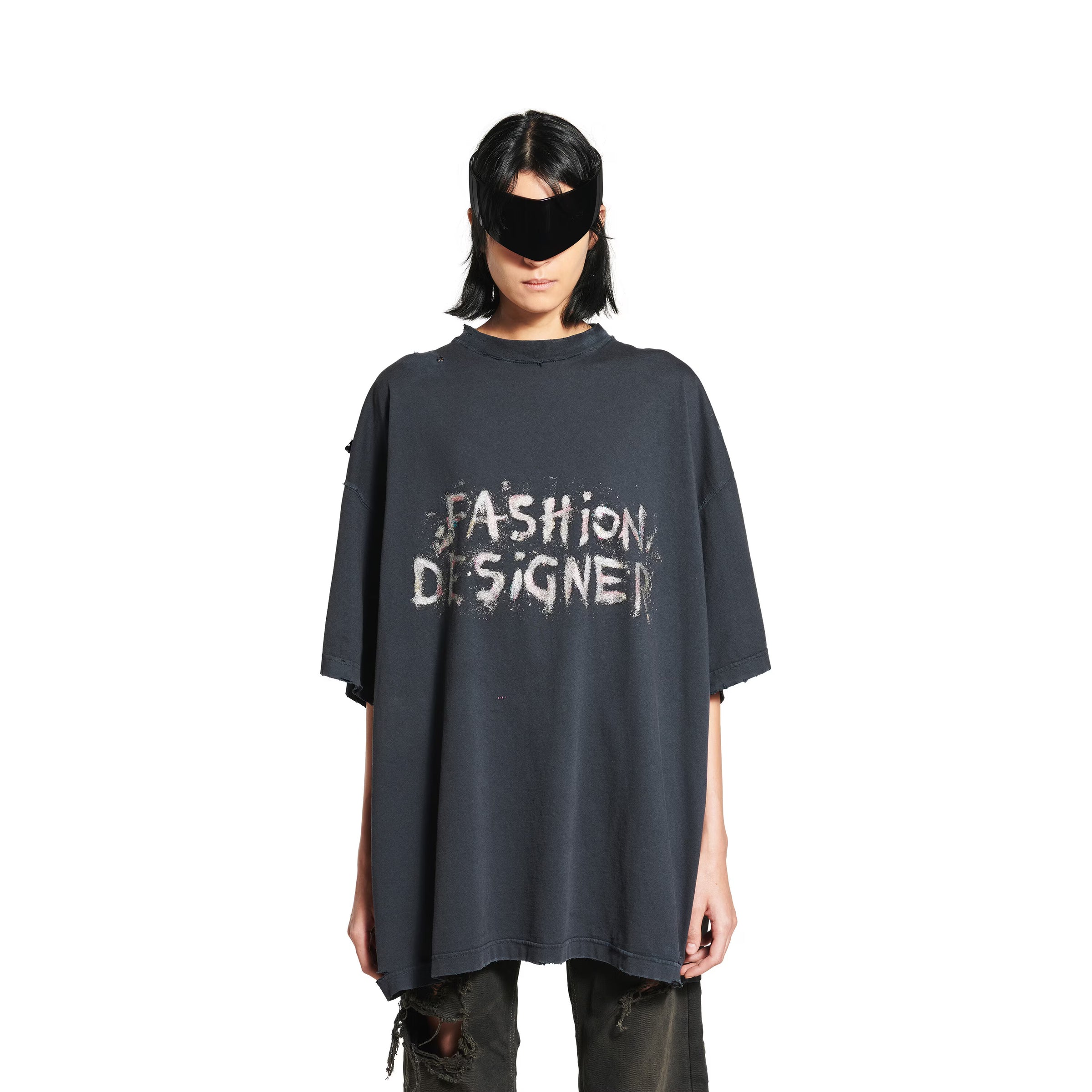 Fashion Designer Oversized T-Shirt in faded black dry jersey