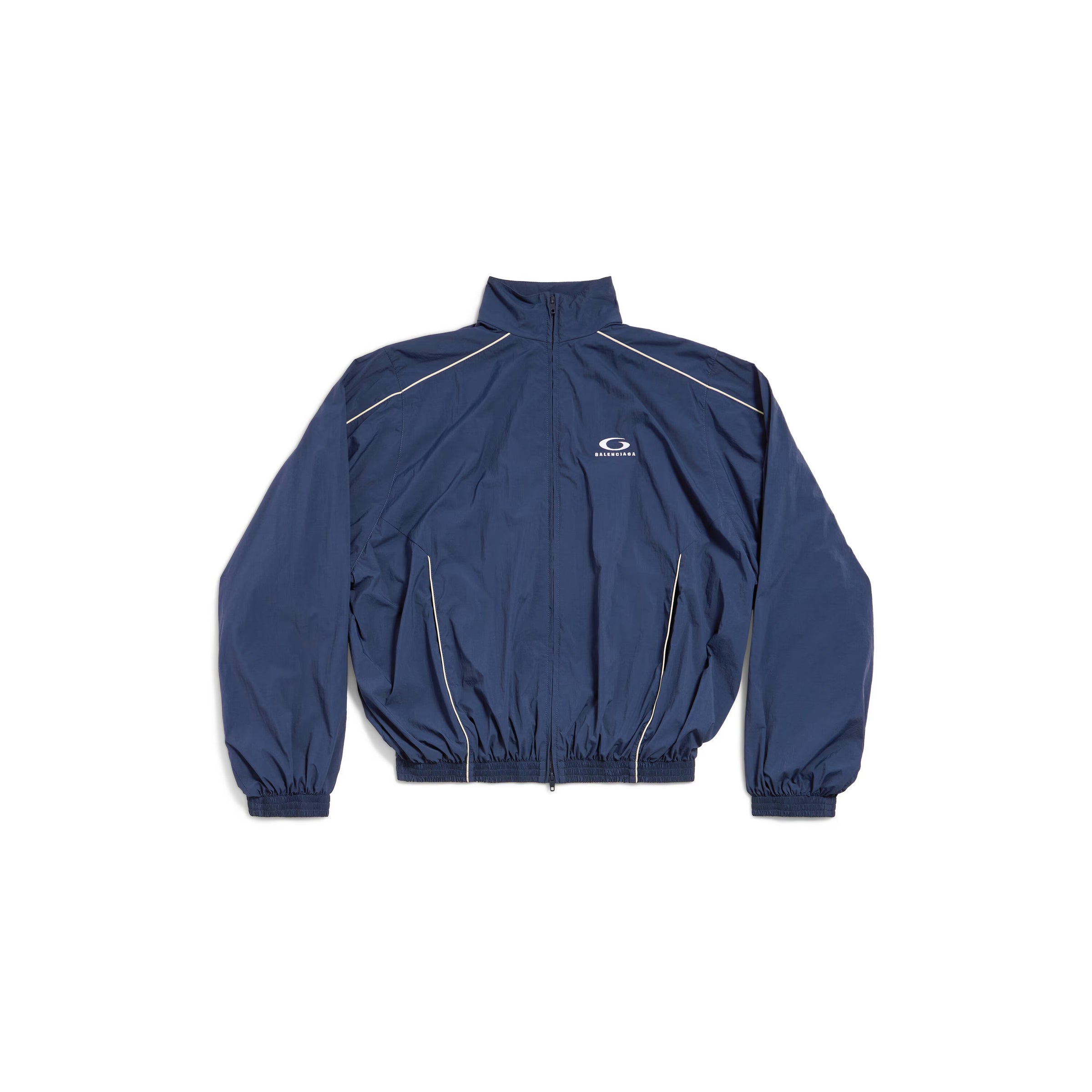 Loop Sports Icon Large Tracksuit Jacket in navy washed nylon is from look 35 of Balenciaga Winter 24 Collection