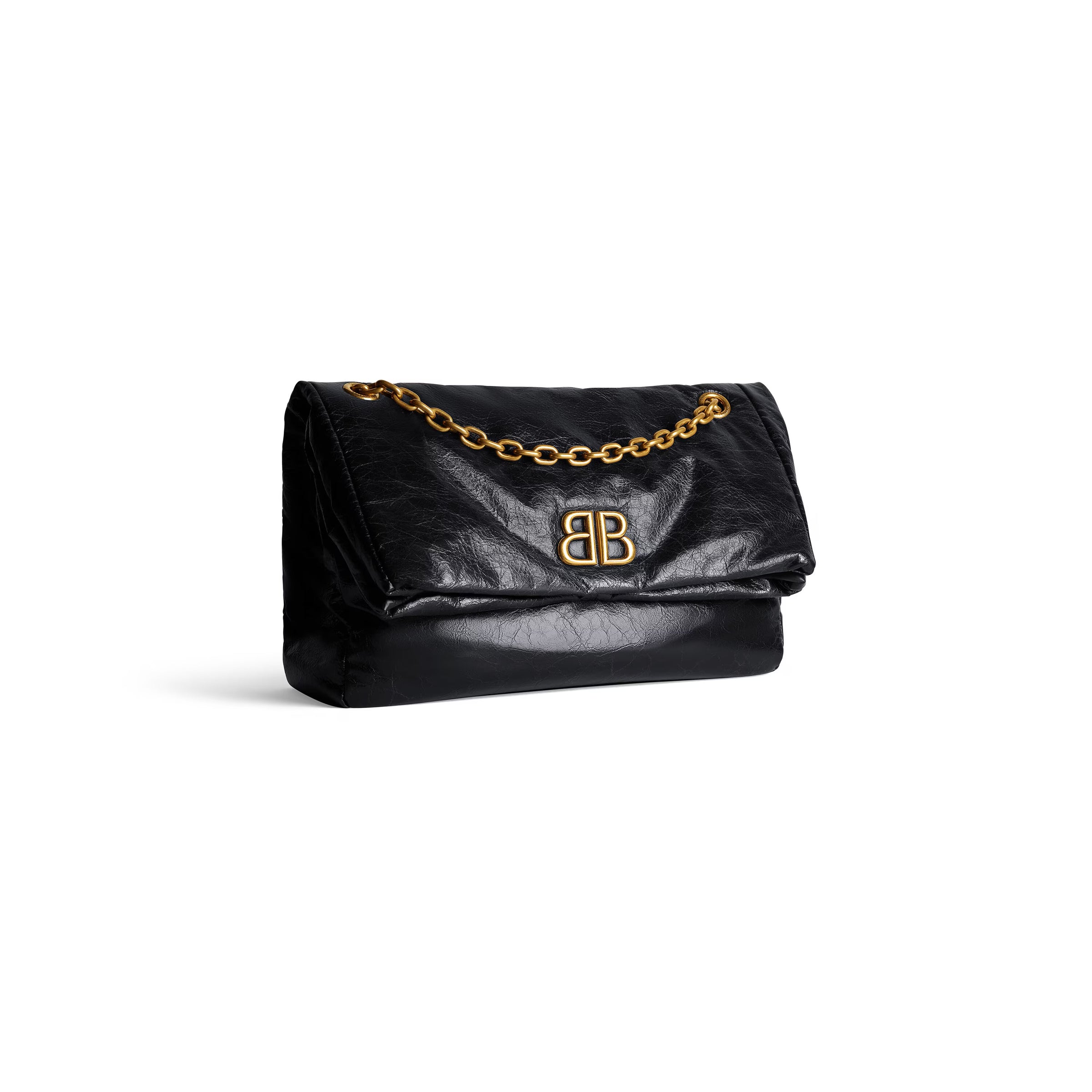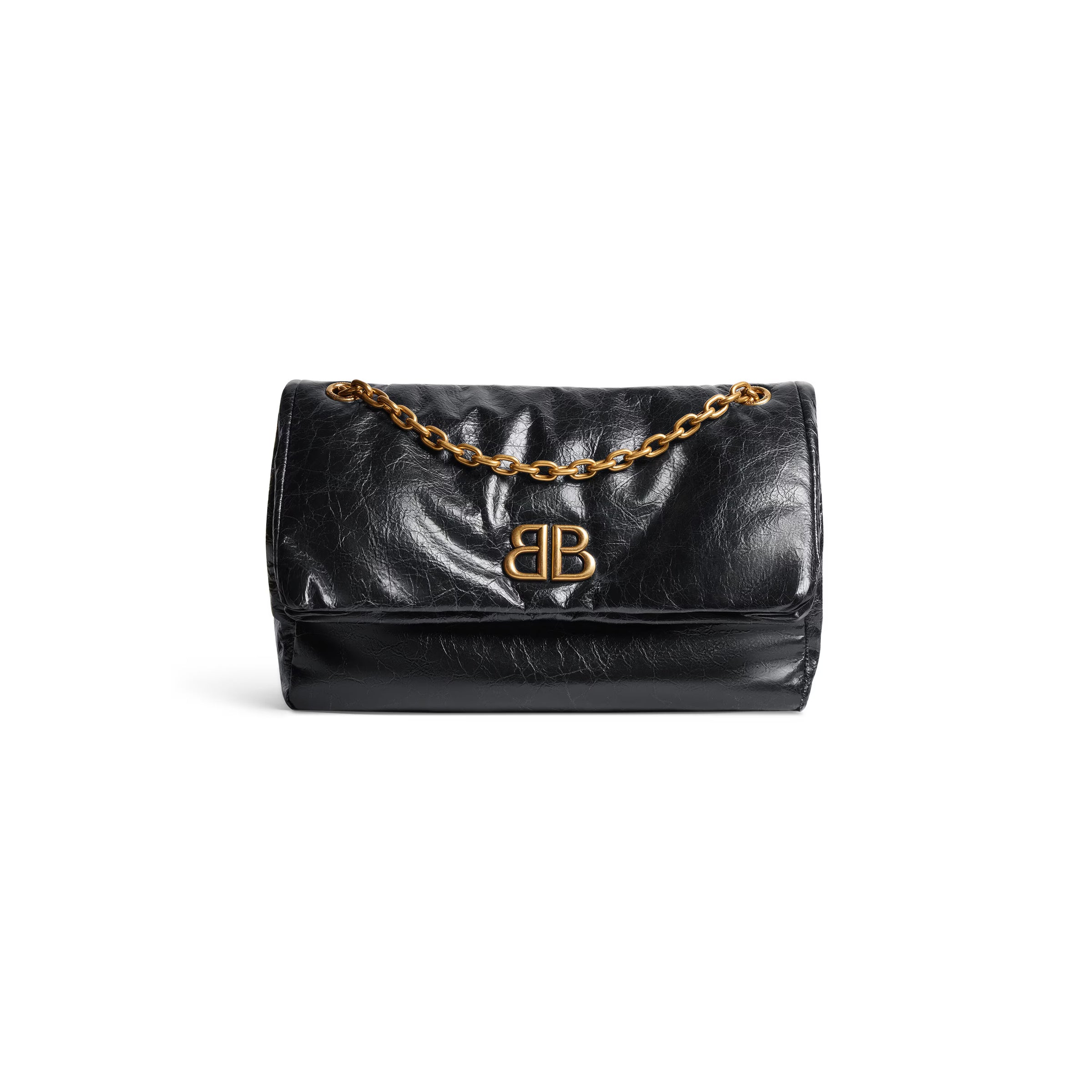 Monaco Medium Chain Bag in black Arena calfskin, aged-gold hardware