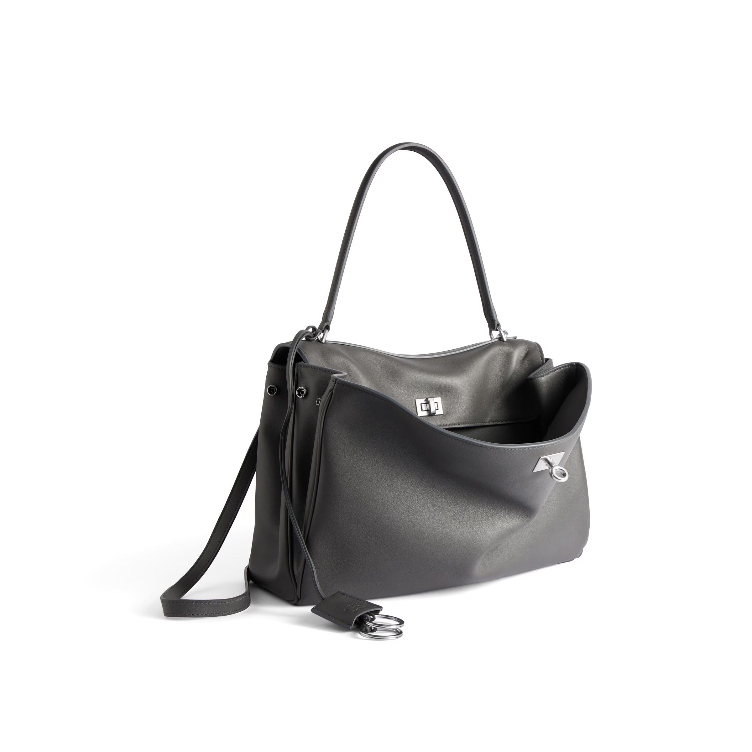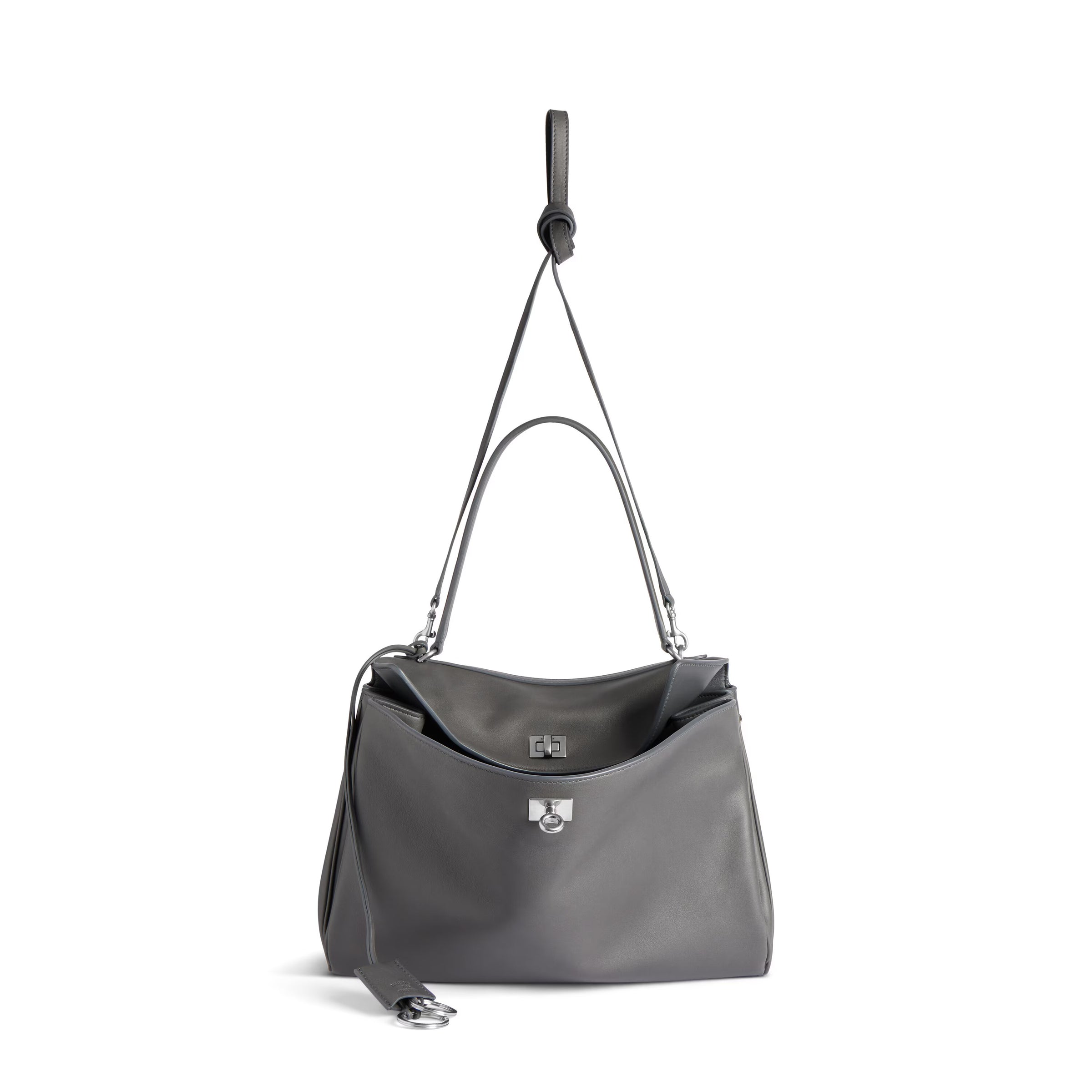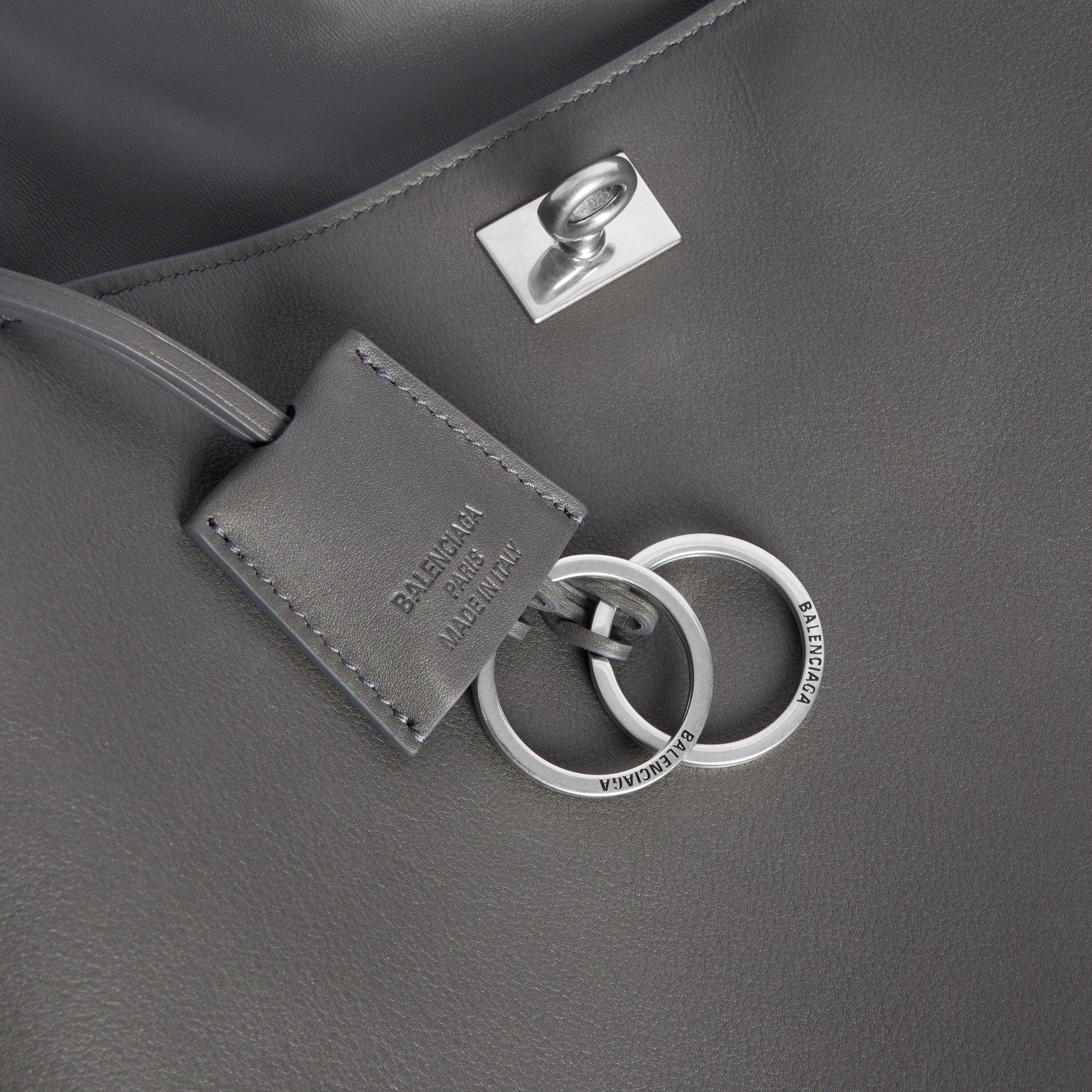 Rodeo Handbag Medium in grey smooth calfskin, aged-silver hardware