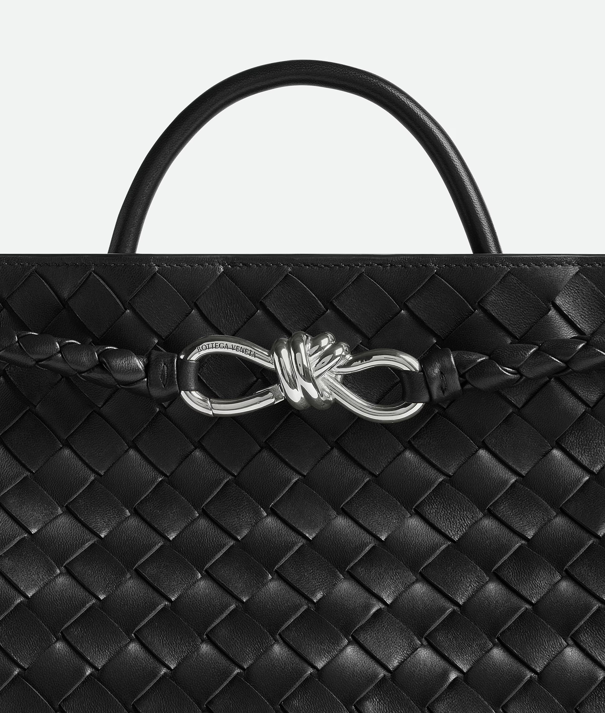 Top handle bag in supple Intrecciato leather with signature knot detail and sliding cross-body strap.