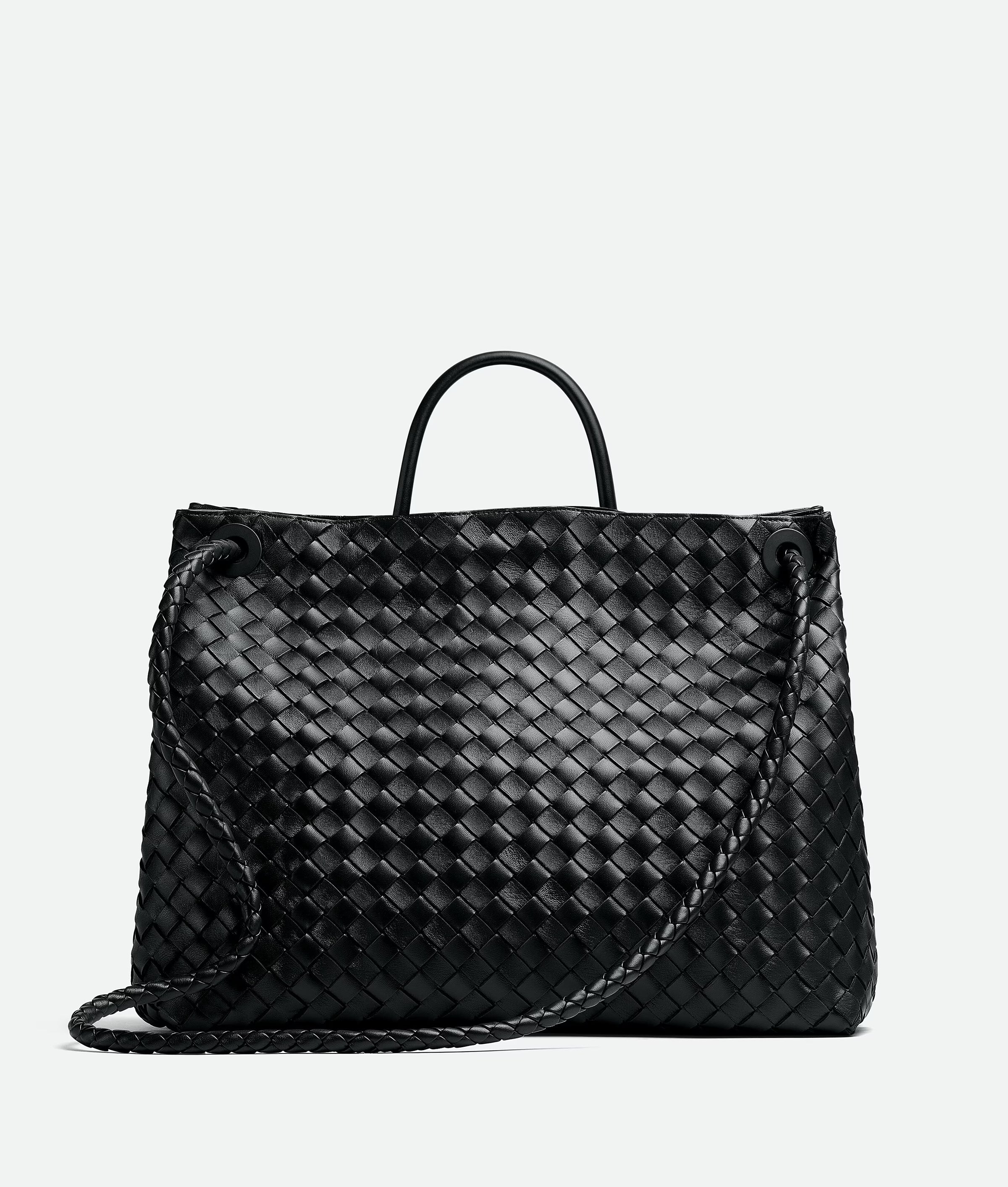 • Large Intrecciato leather top handle bag with sliding cross-body strap