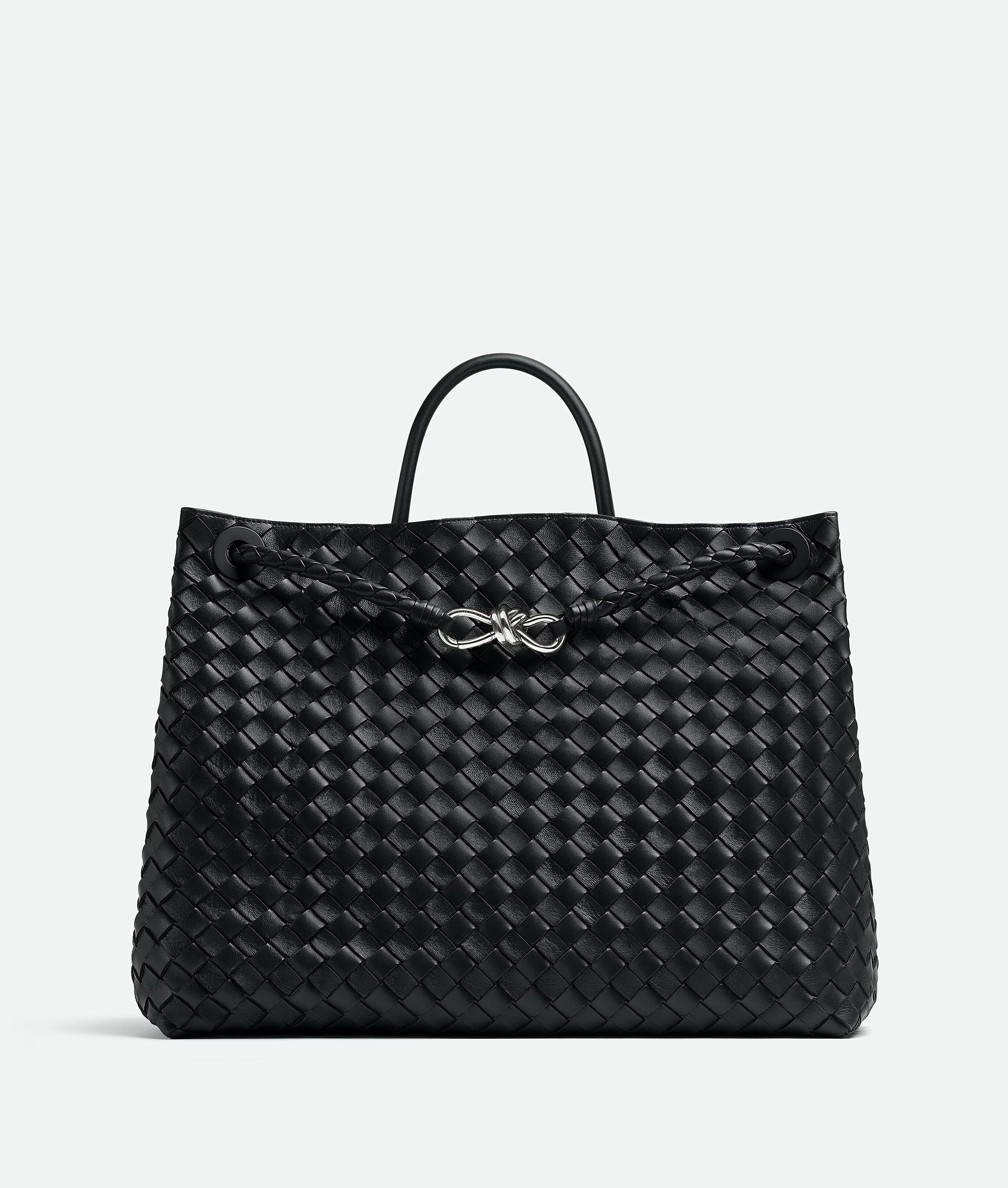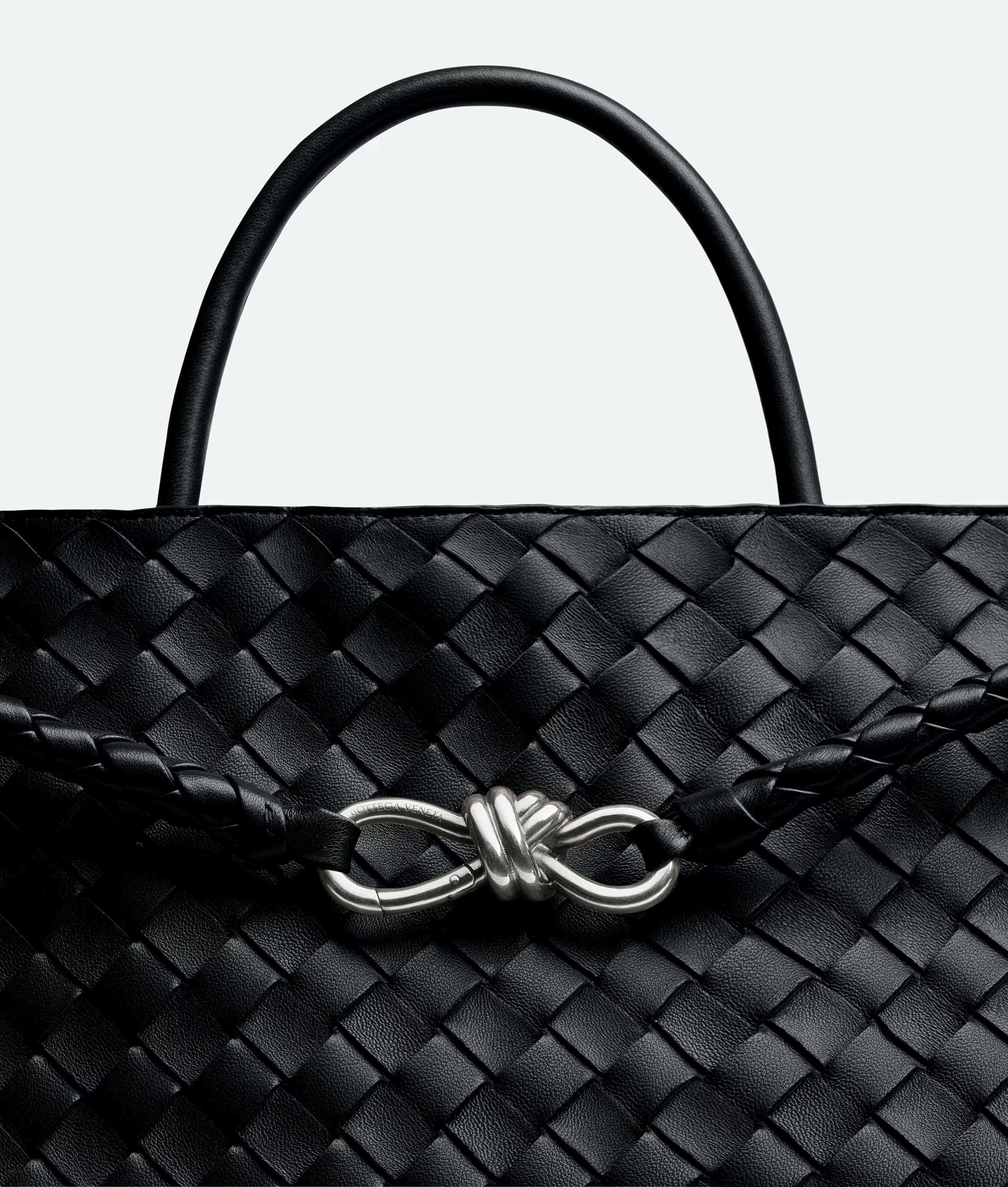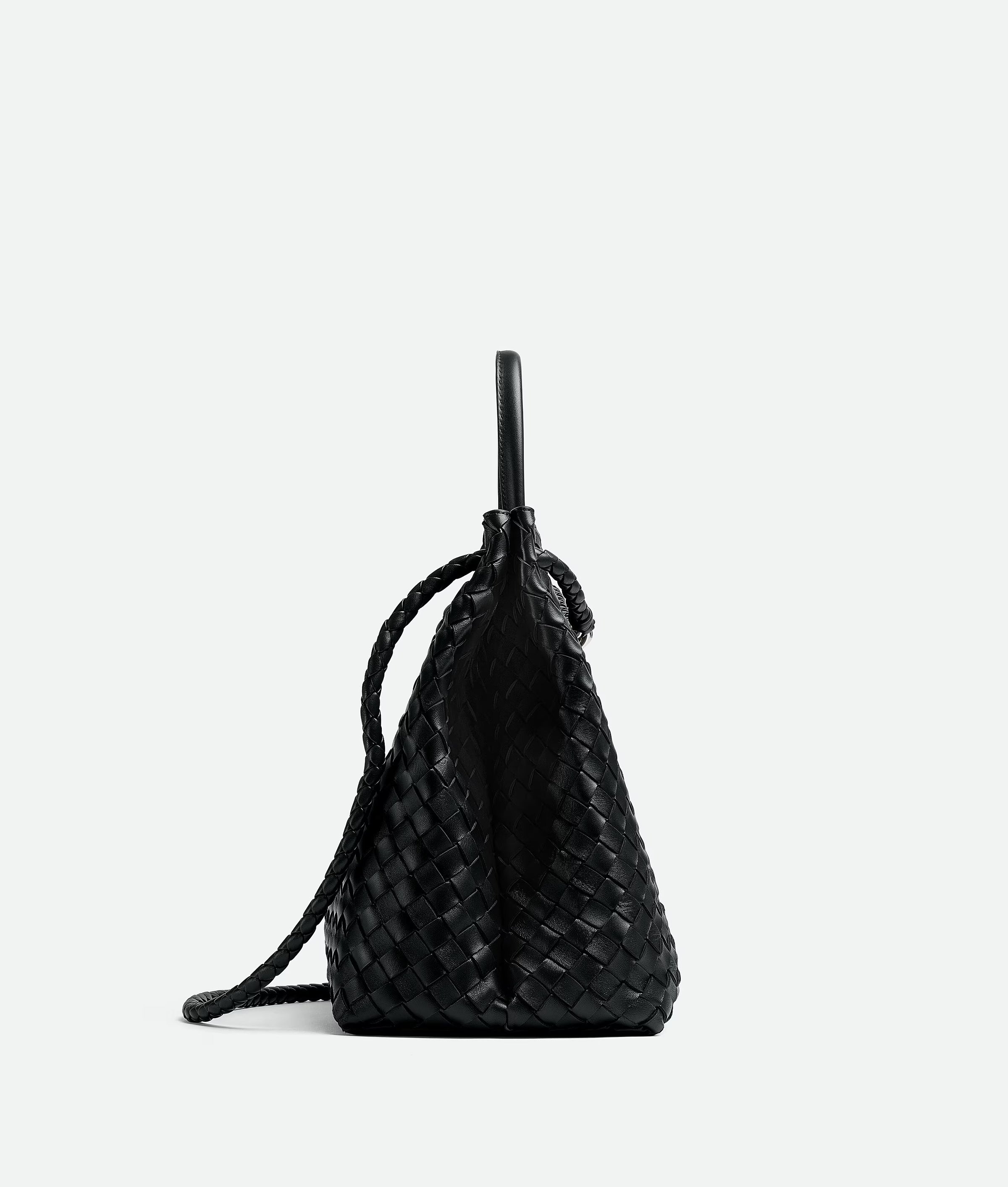 Top handle bag in supple Intrecciato leather with signature knot detail and sliding cross-body strap.