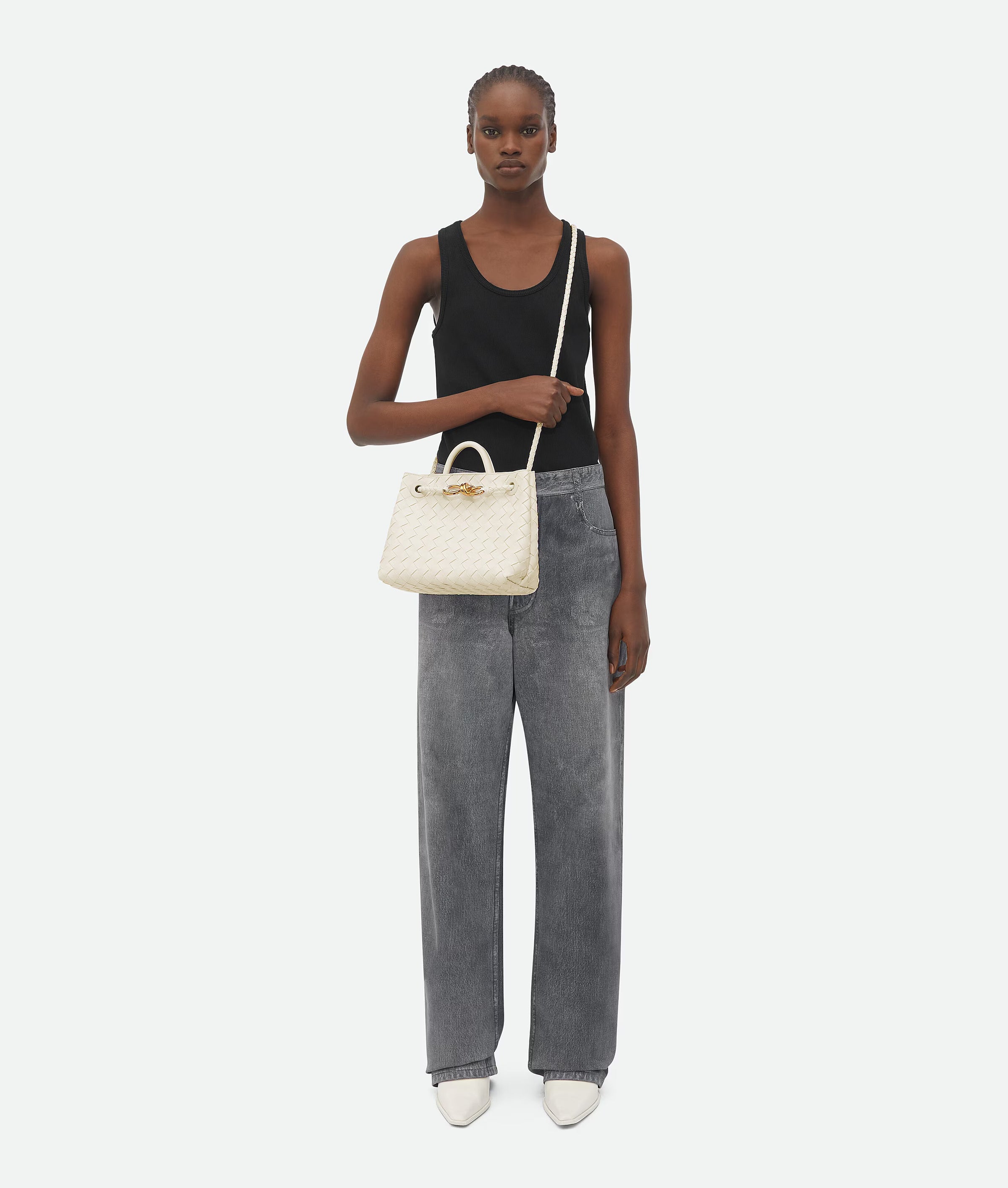 Top handle bag in supple Intrecciato leather with signature knot detail and sliding strap.