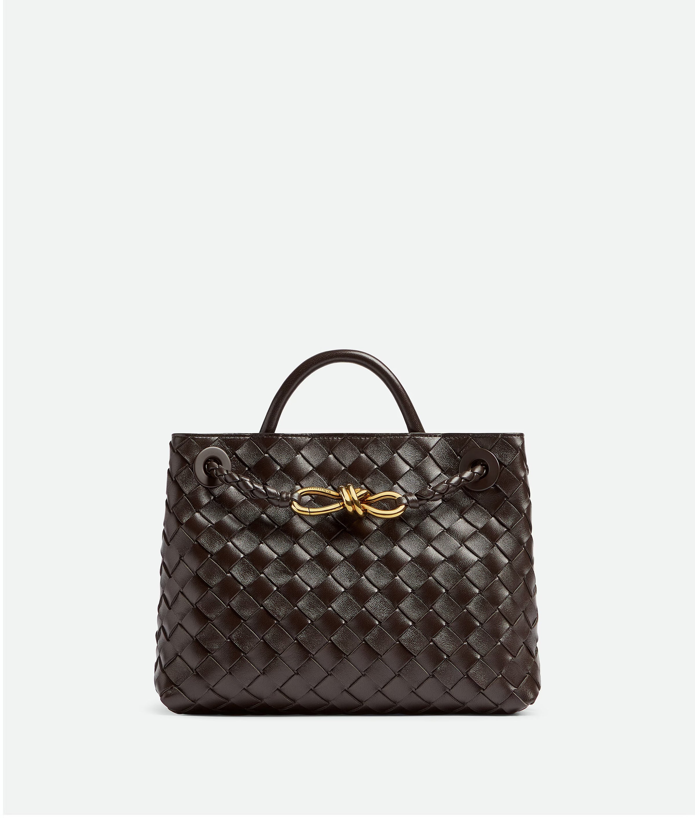 Top handle bag in supple Intrecciato leather with signature knot detail and sliding strap.