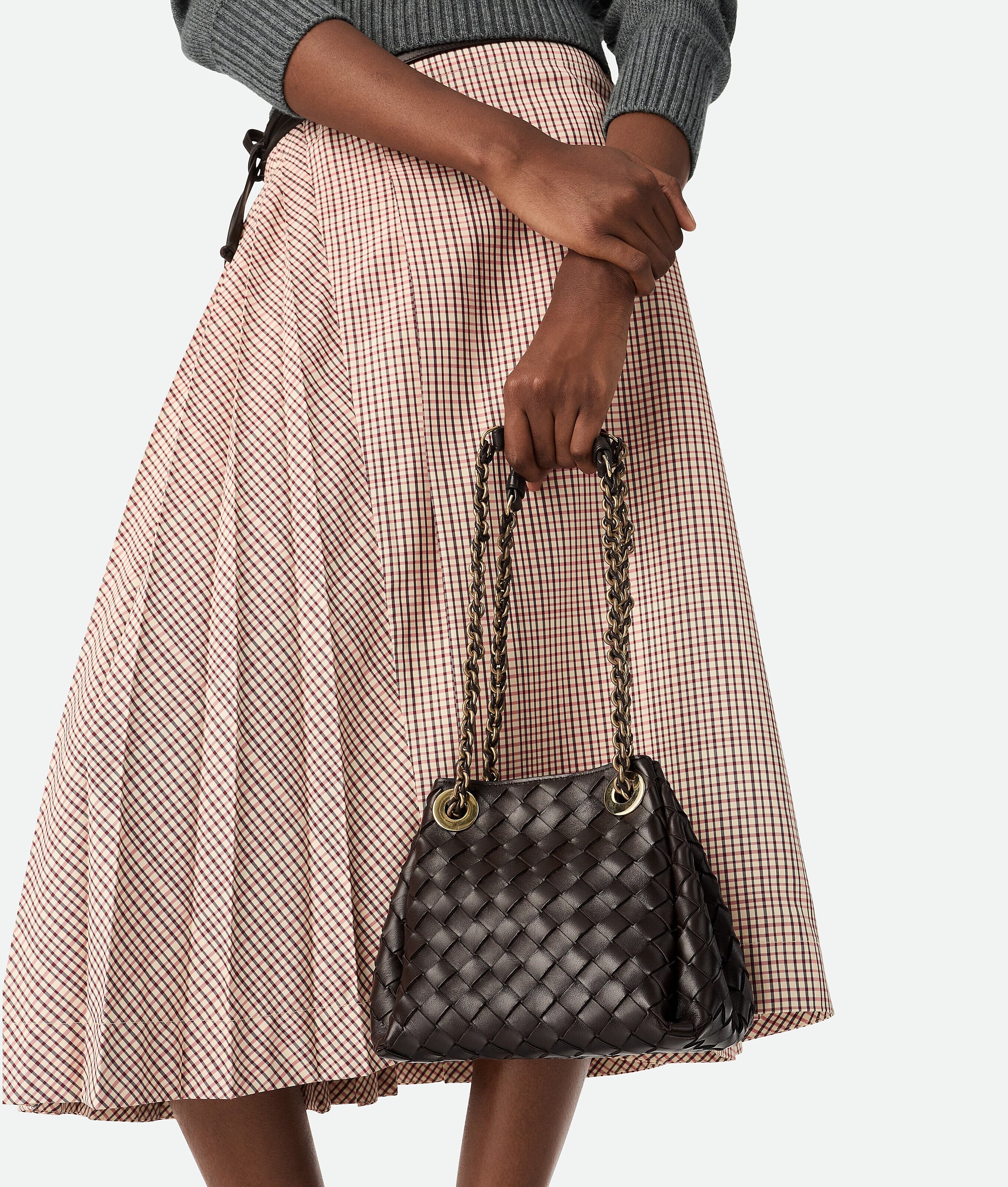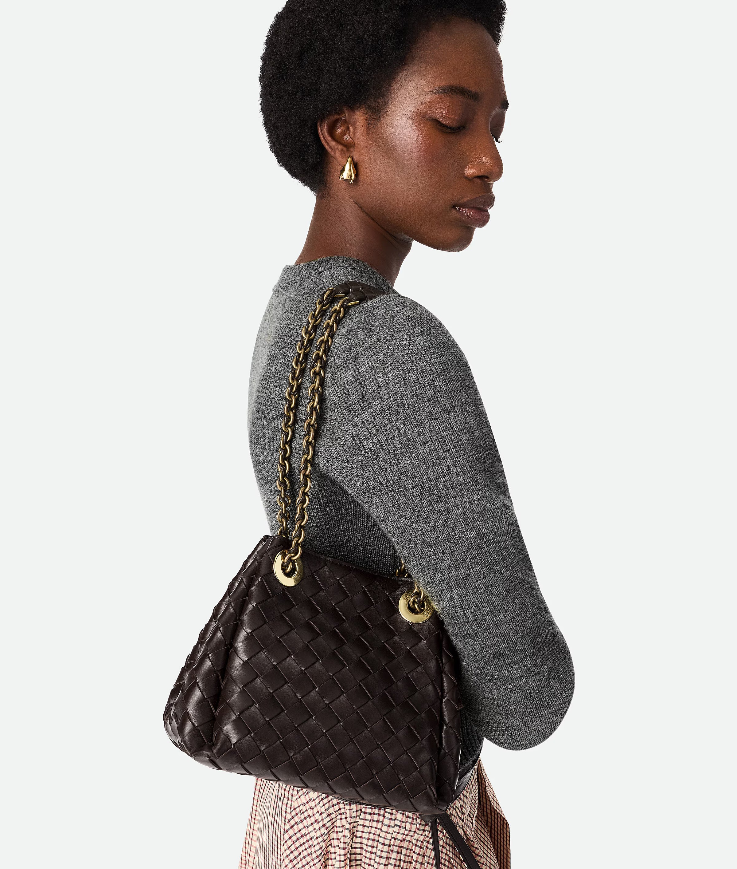 Shoulder bag in supple Intrecciato leather with signature knot detail and sliding cross-body chain.