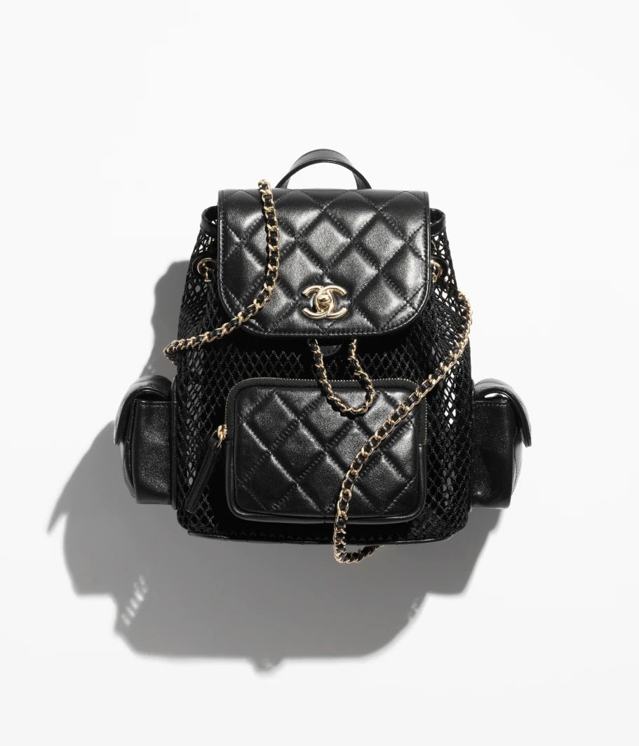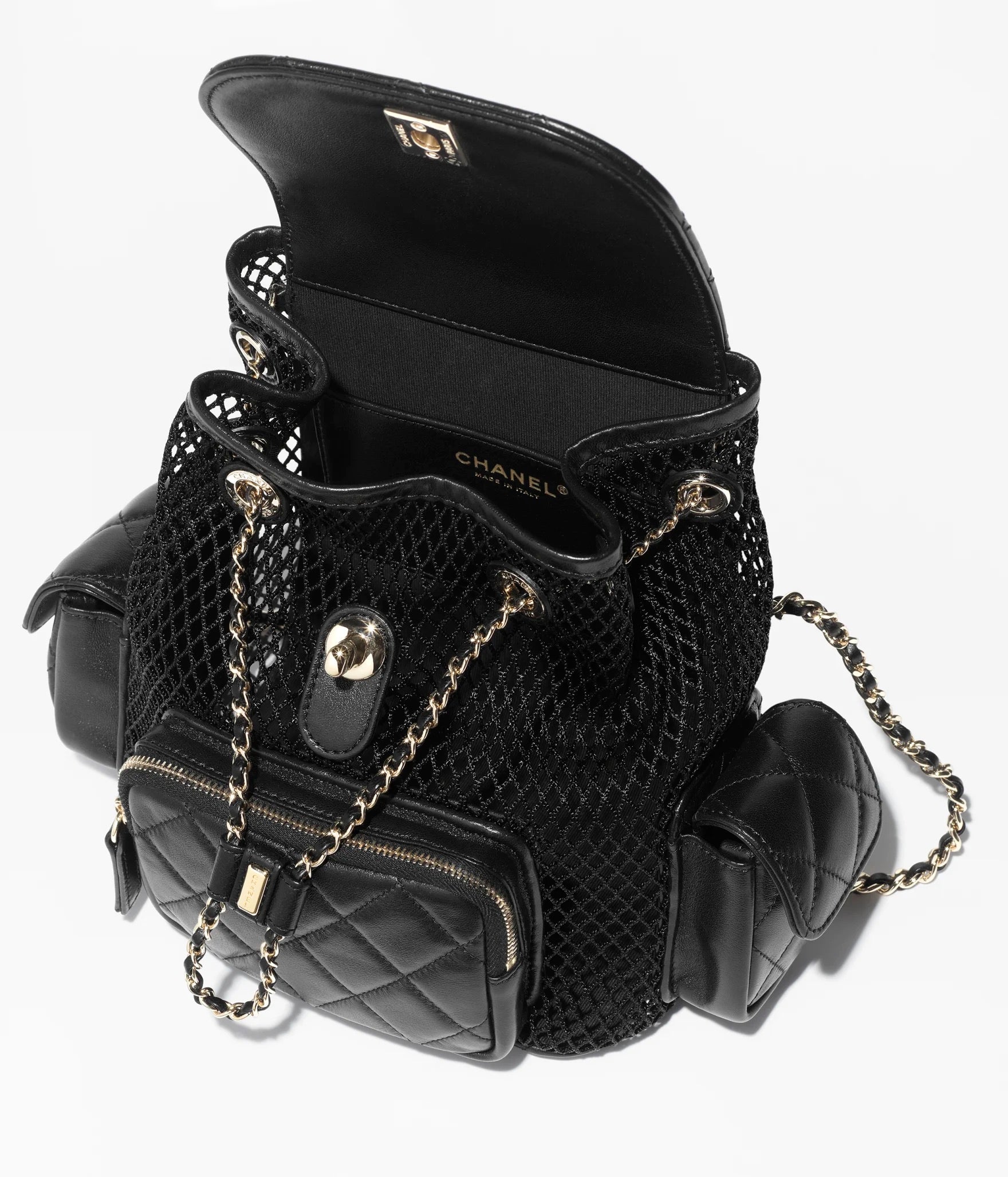 Material: Mesh, Shiny Lambskin & Gold-Tone Metal