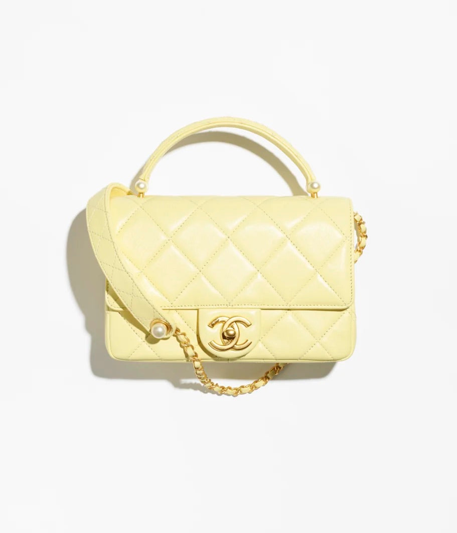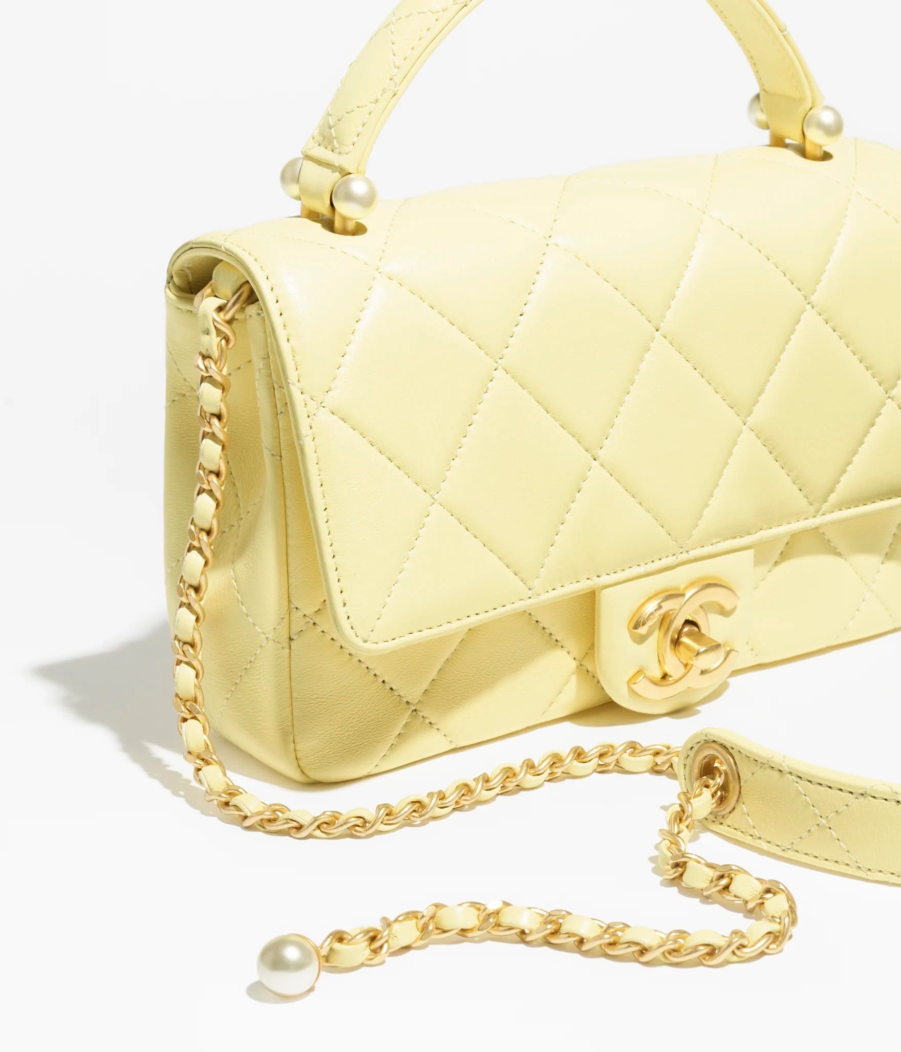 Material: Shiny Lambskin, Imitation Pearls & Gold-Tone Metal