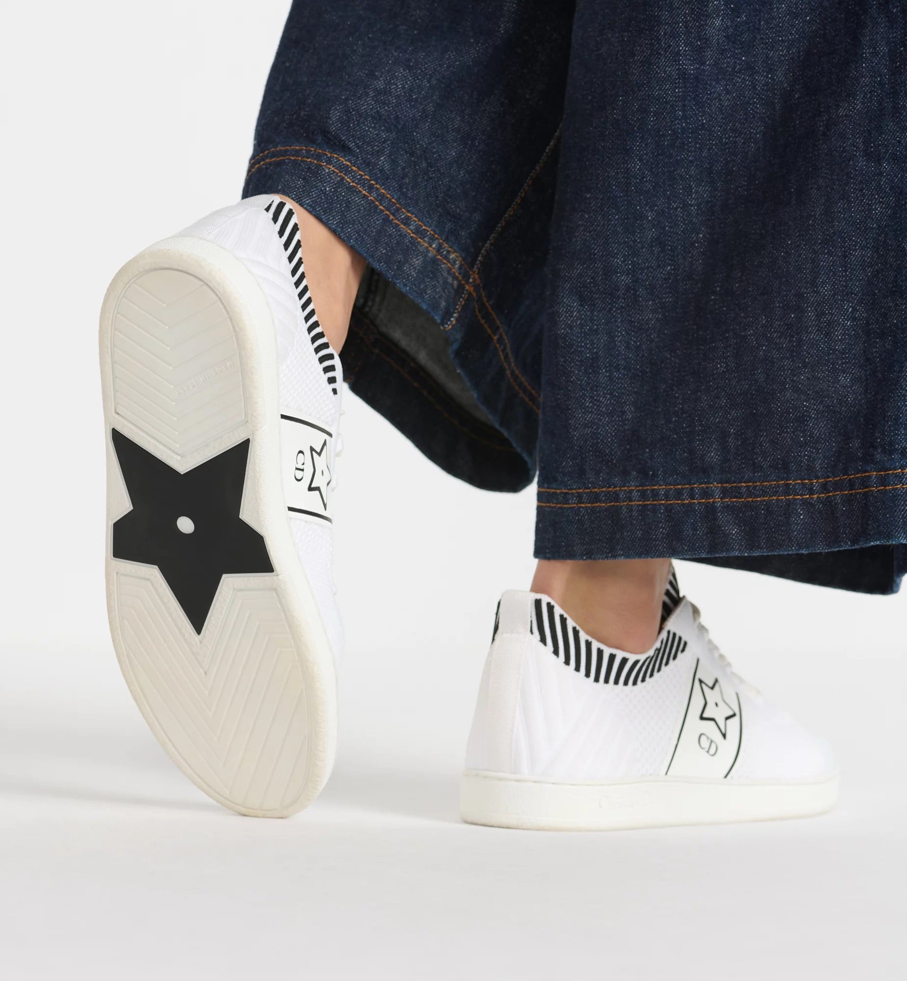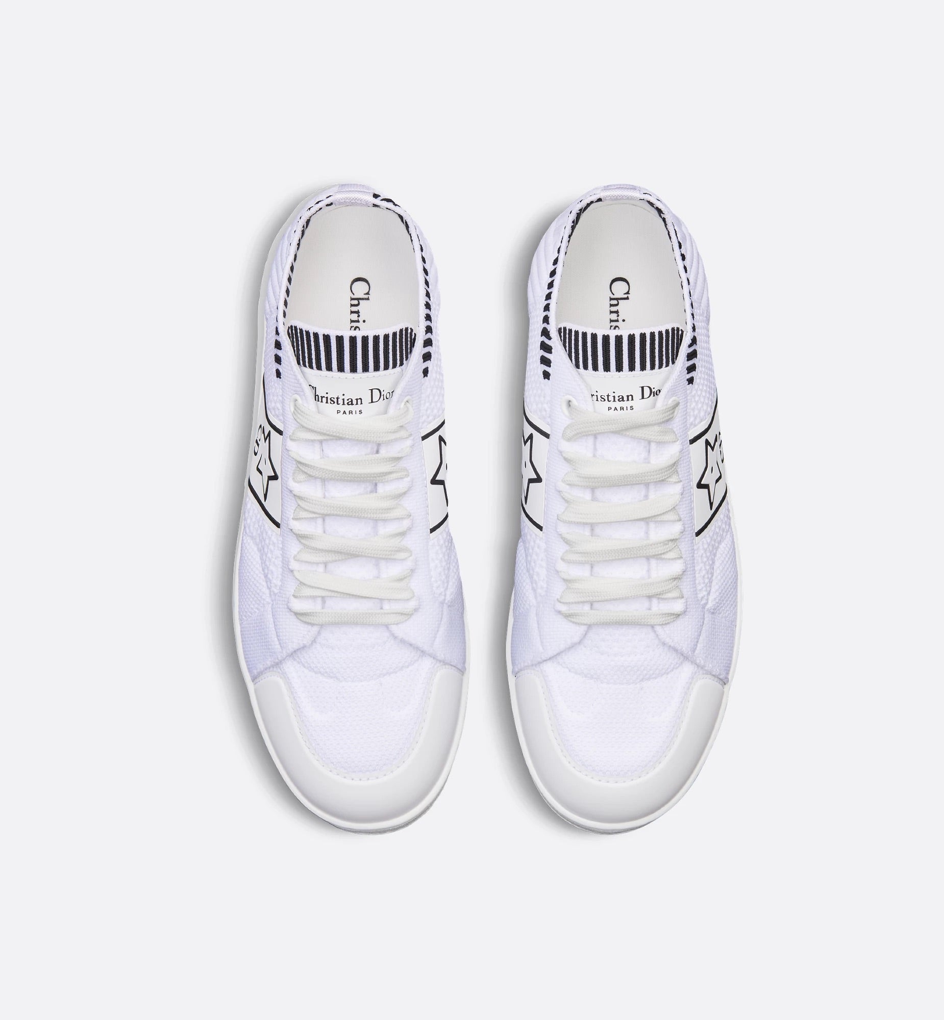 Now a House essential, the Dior Star sneaker is distinguished by its timeless lines. Crafted in white technical mesh, it is embellished with a black CD signature and star on the sides, while the tongue features the Christian Dior Paris signature. Completed by a thin signature sole, the lightweight sneaker will give the finishing touch to any relaxed outfit, any time of year.