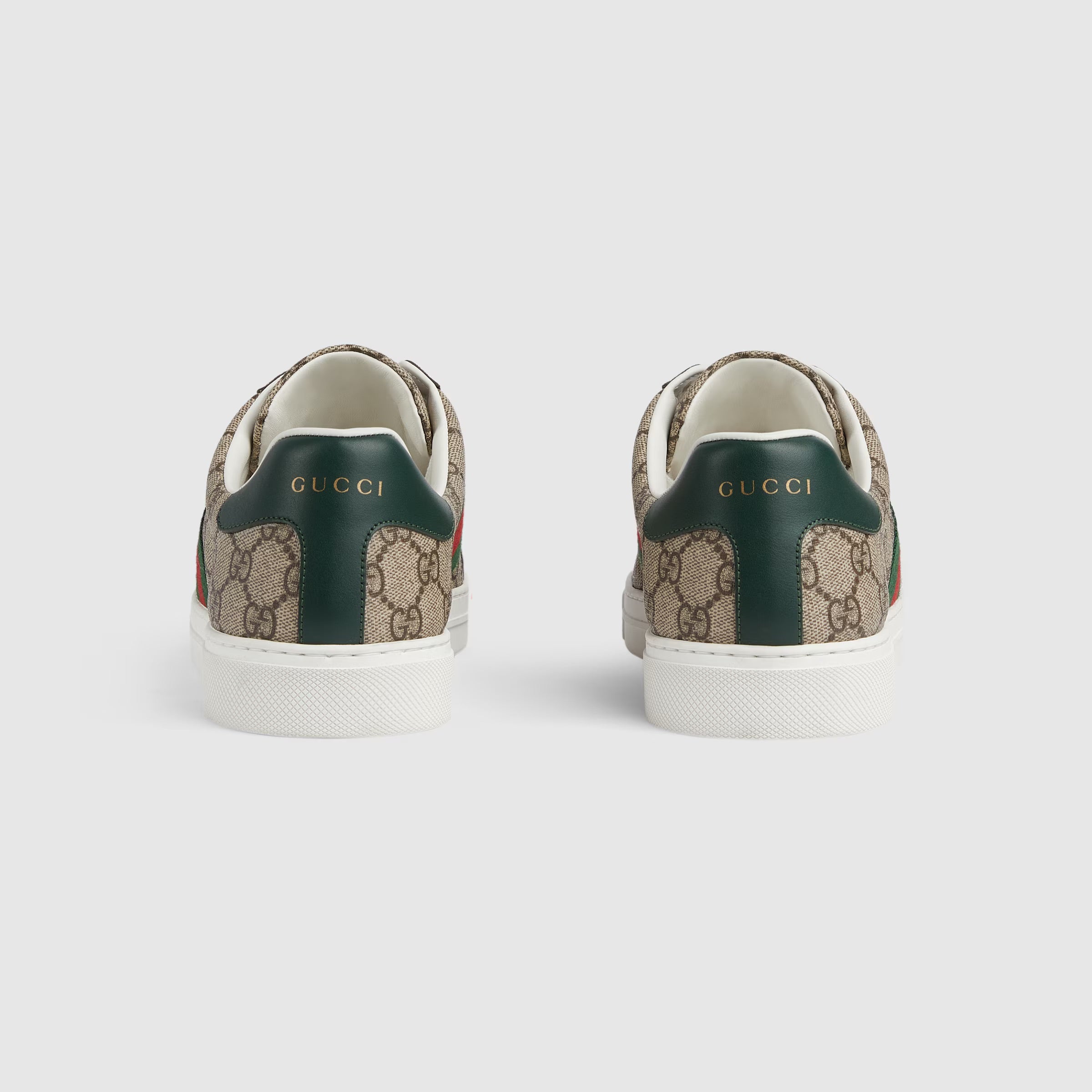 Inspired by the summer spirit and beach clubs on the Italian coast, this item is part of Gucci Lido. Since its debut, the Ace sneaker has become a mainstay of the House's narrative. A new version of the characteristic low-top silhouette is presented in the latest collection, featuring unique details. A chunkier construction defines the shape, while a metal “ACE” tag shines on the lace-up closure. Gucci's distinctive Web stripe completes the style.
