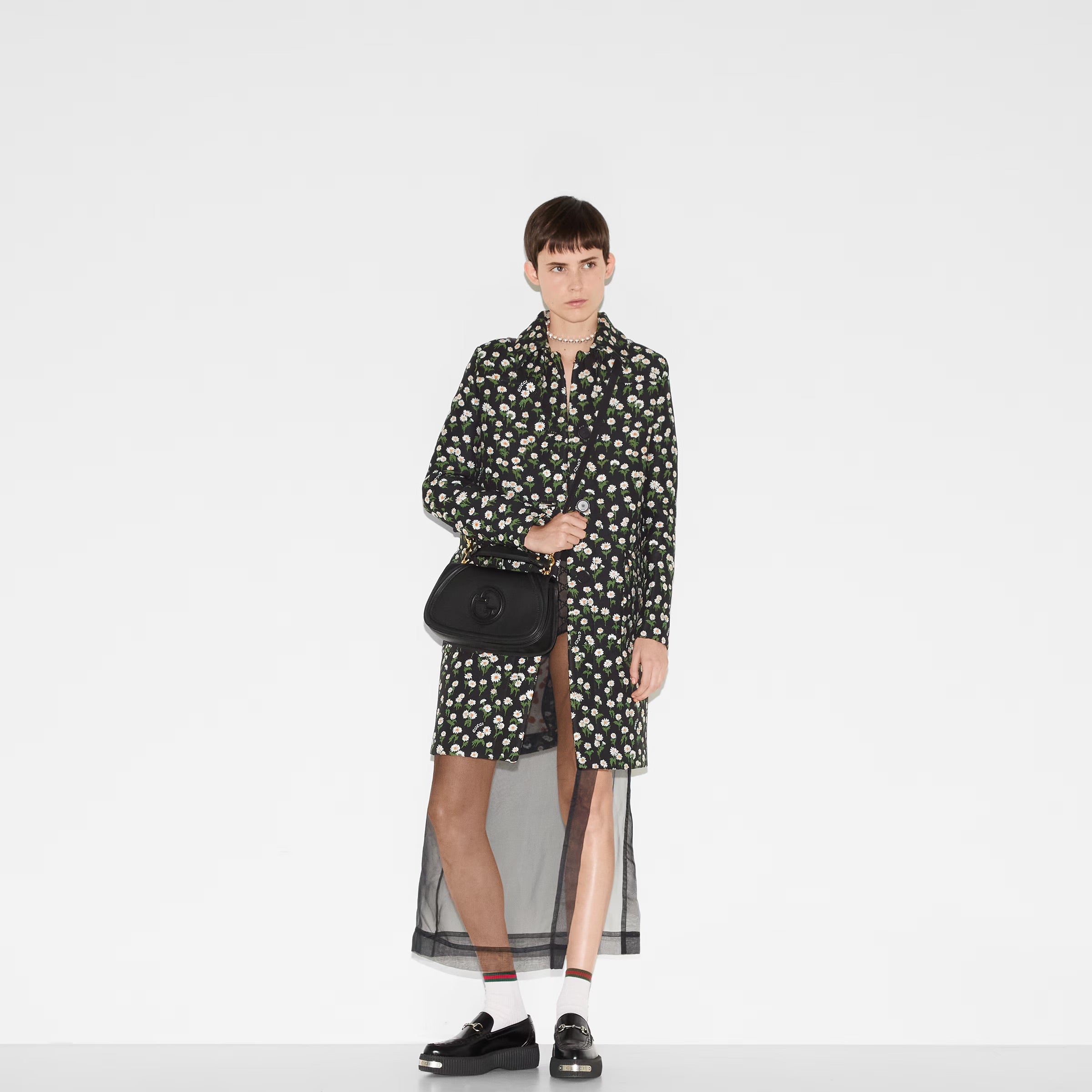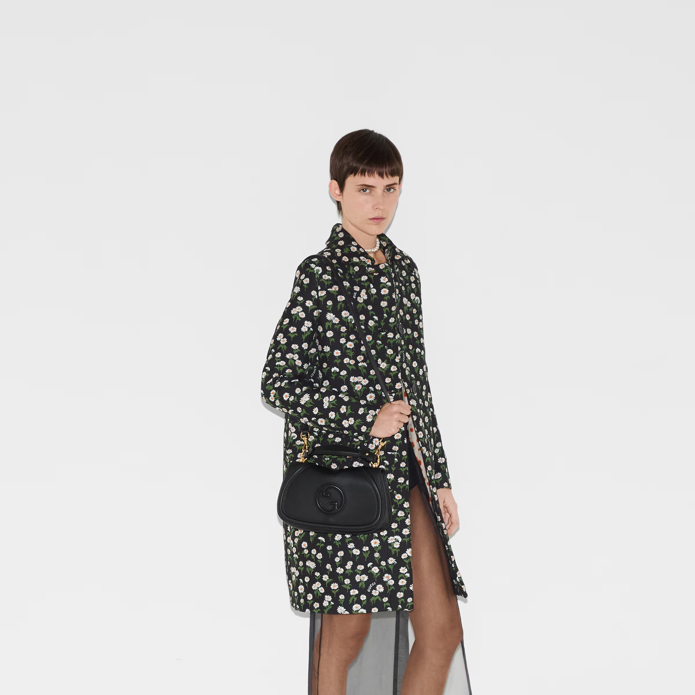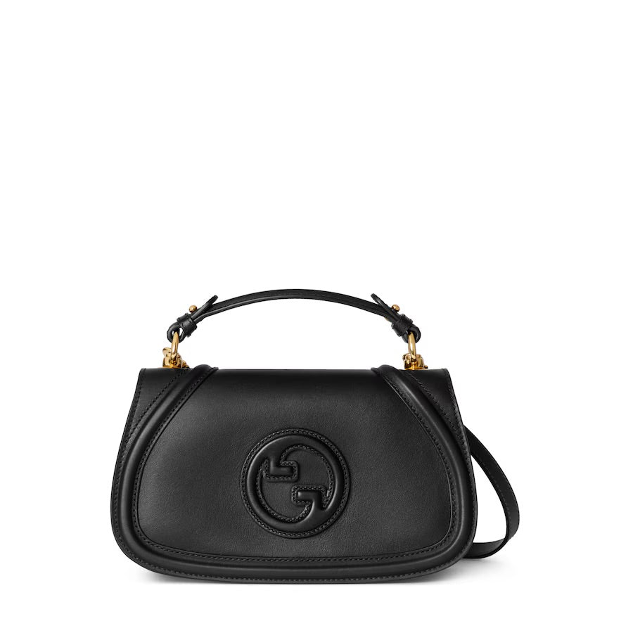 The new Gucci Blondie bag, whose distinctive logo first appeared in the House’s collections in the early 1970s, weaves together past and present in a fusion of nostalgia and modernity. This medium top handle bag with a detachable and adjustable leather shoulder strap is crafted from black smooth leather.