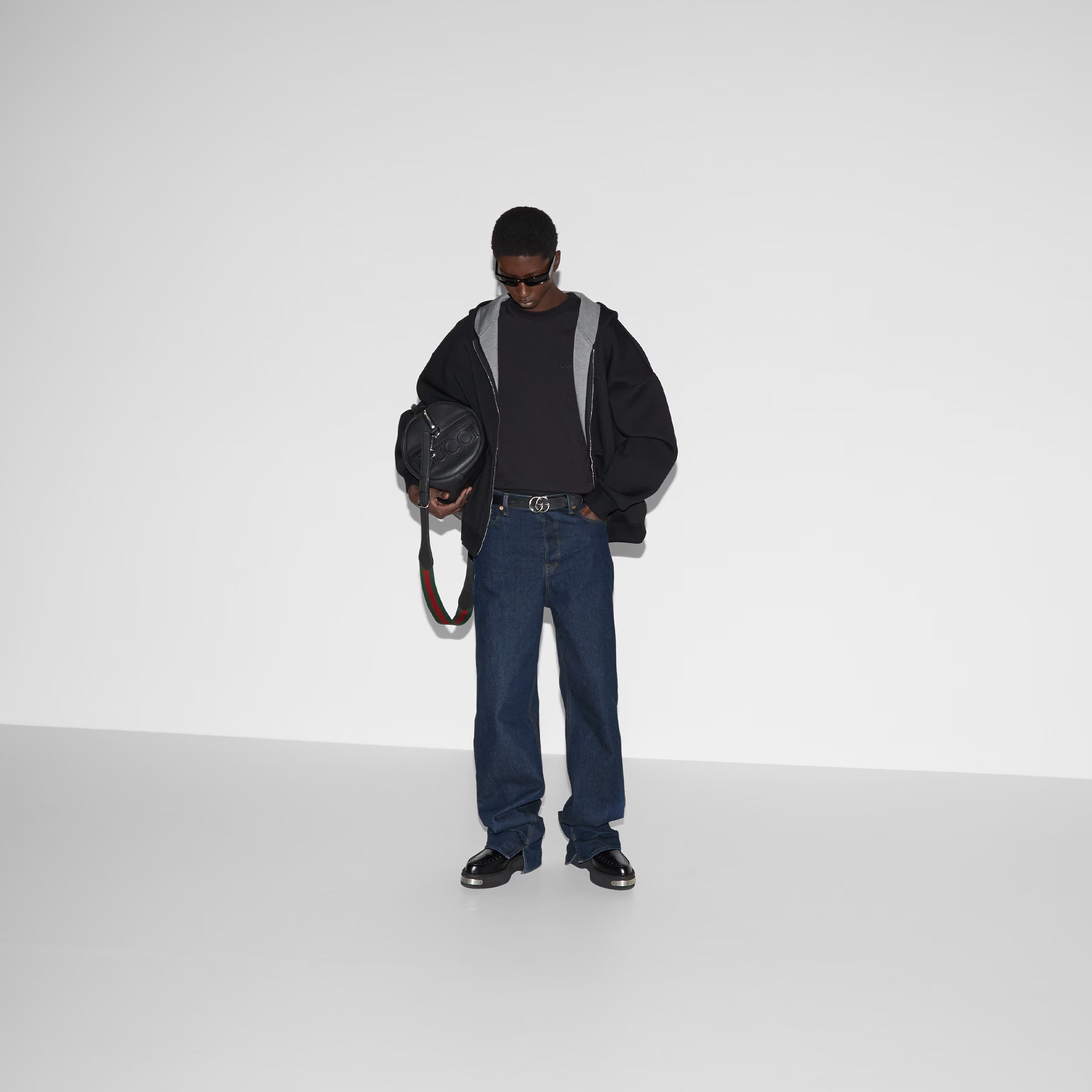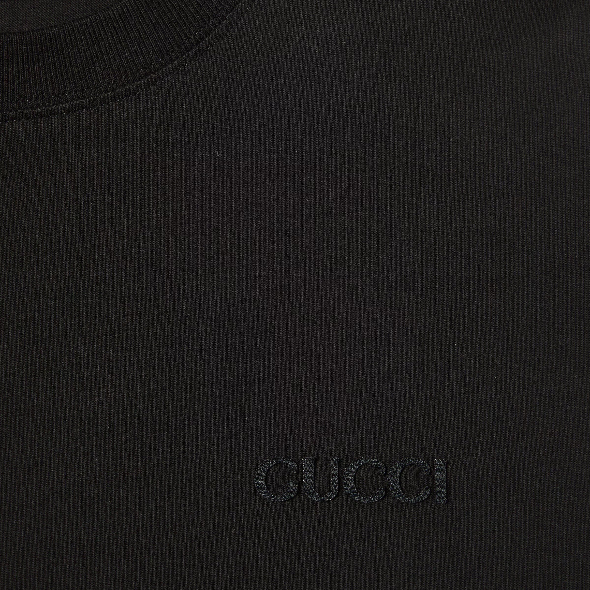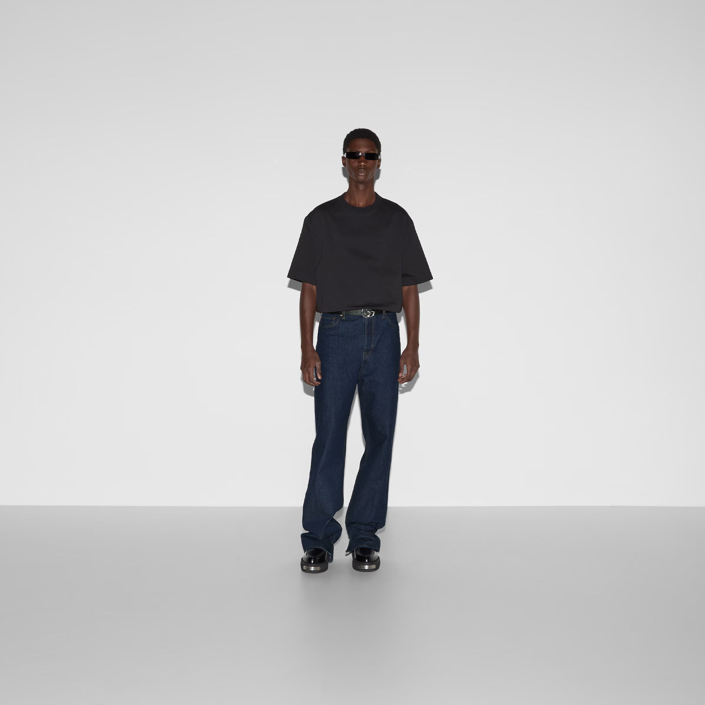 Part of the men's Fall Winter 2024 collection, everyday ready-to-wear pieces are elevated thanks to high quality materials and impeccable craftsmanship. This oversize fit T-shirt appears in a black heavy felted cotton jersey, while a Gucci embroidery enriches the chest.