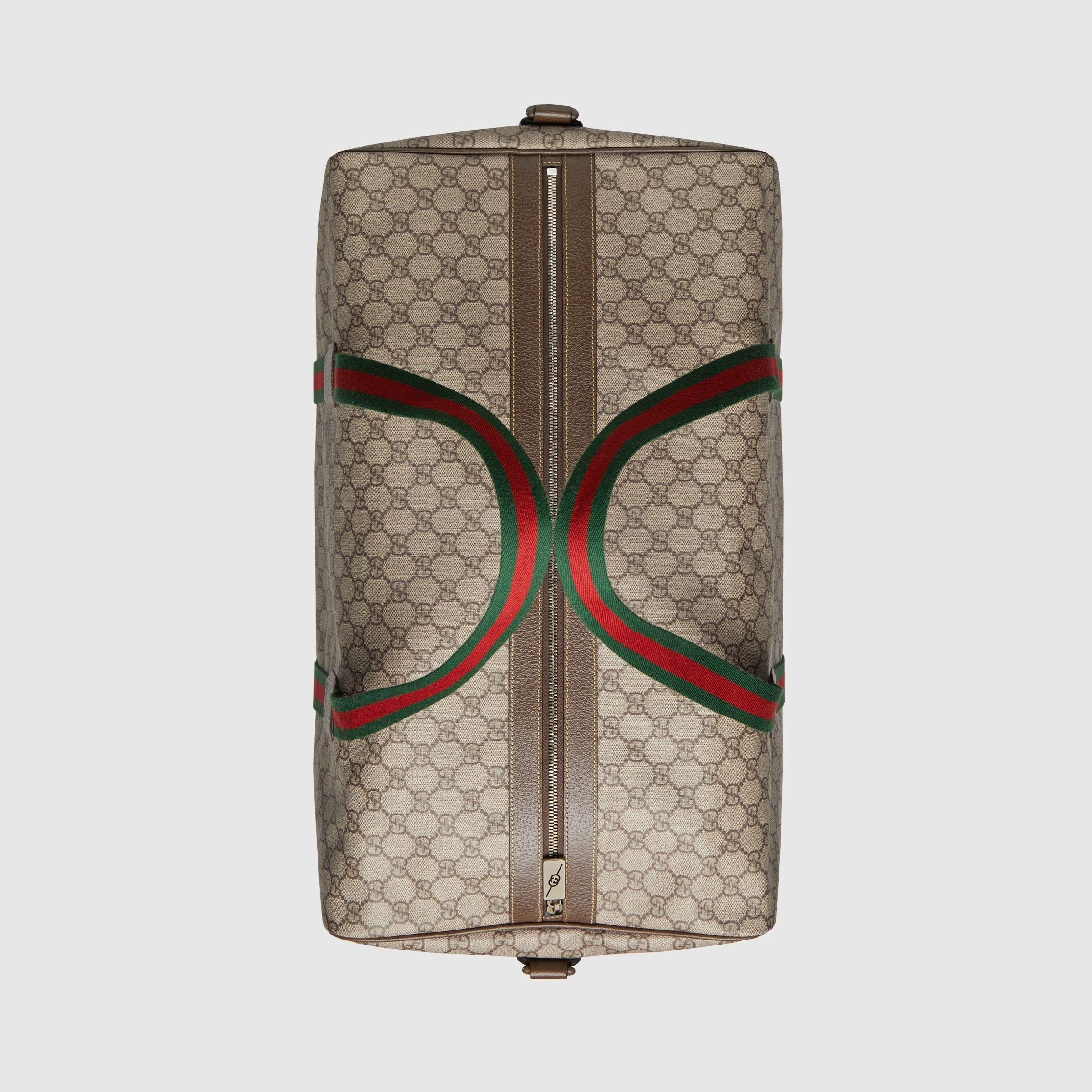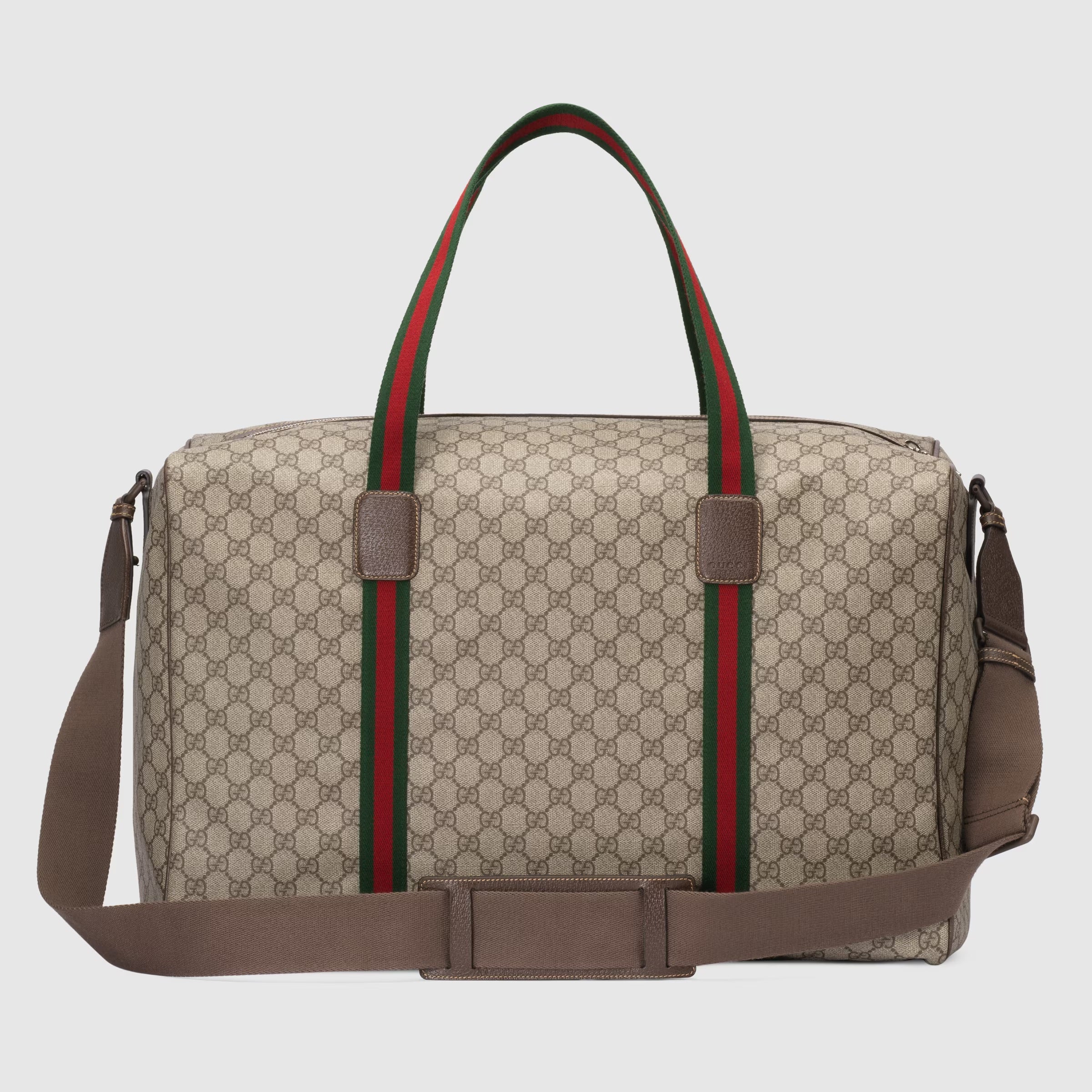 The GG Supreme is inspired by an archival design from the 1930s and remains one of the House's most emblematic materials. Presented in the traditional colorway on this duffle bag, the canvas is representative of timeless pieces and everlasting design.