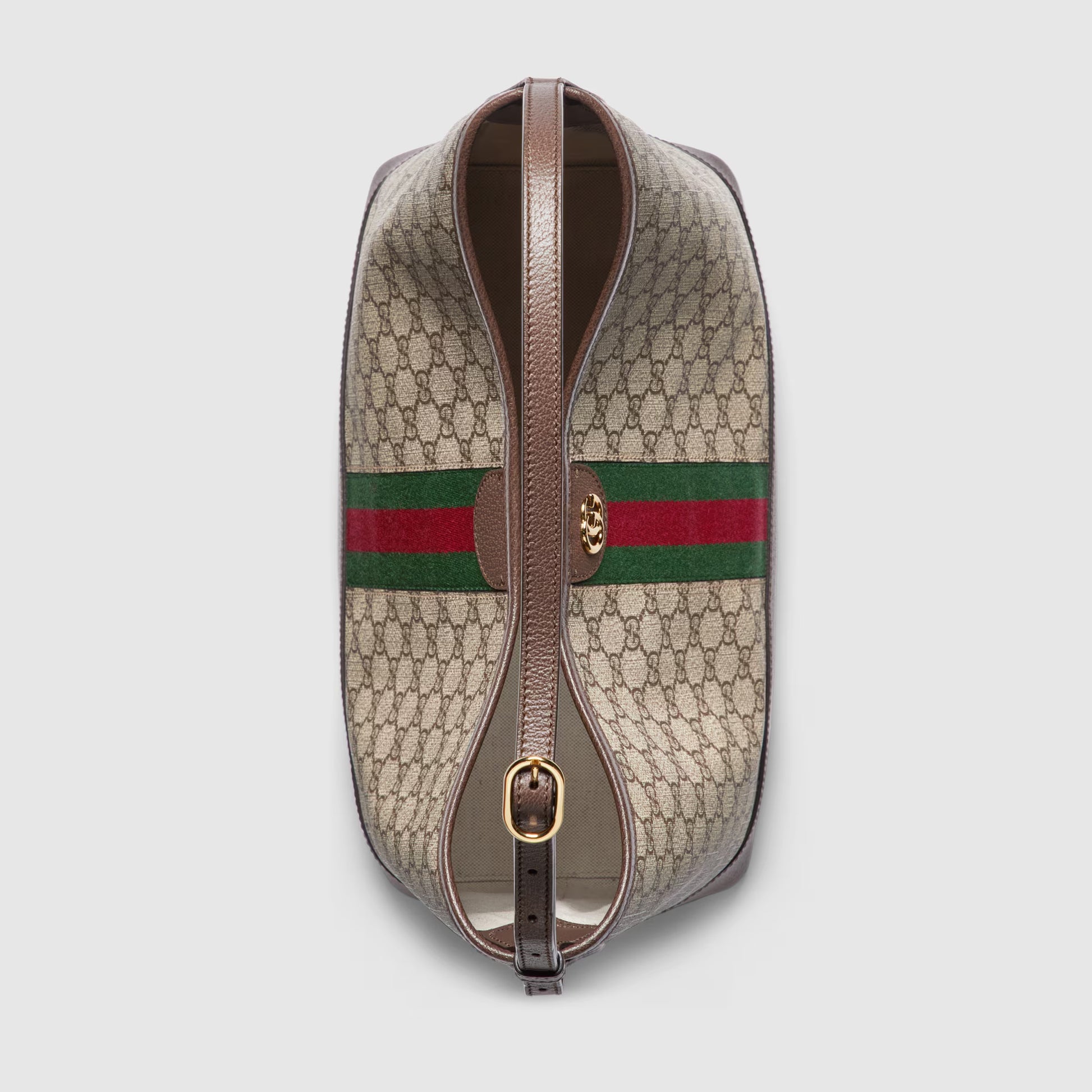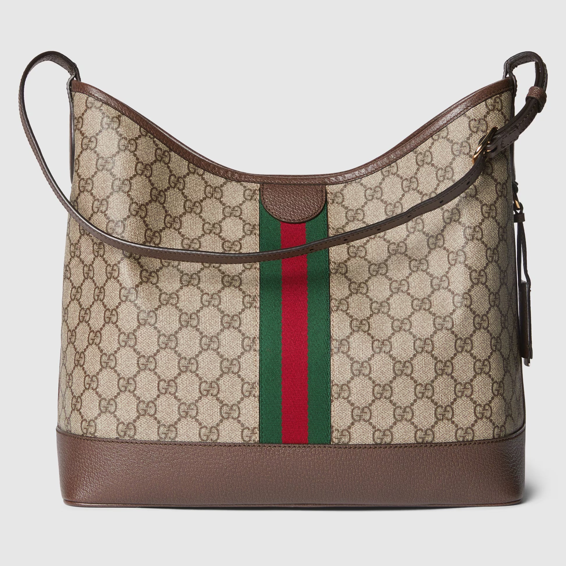 The Ophidia is reinvented in new and unexpected ways in this large-sized piece which blends the open bucket design and shoulder bag style. It is crafted in the House's signature GG Supreme in beige and dark brown.