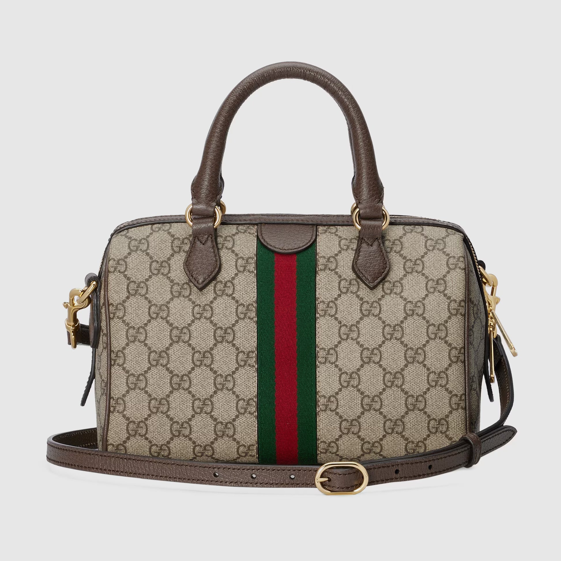 A signature fabric, GG Supreme has become a staple throughout the Gucci universe. Reinterpreted through the Gucci lens, the material appears throughout the latest collections. Here, this medium boston bag is crafted with the all-over monogram motif. Completing the logo feel, the signature Double G hardware completes the style.