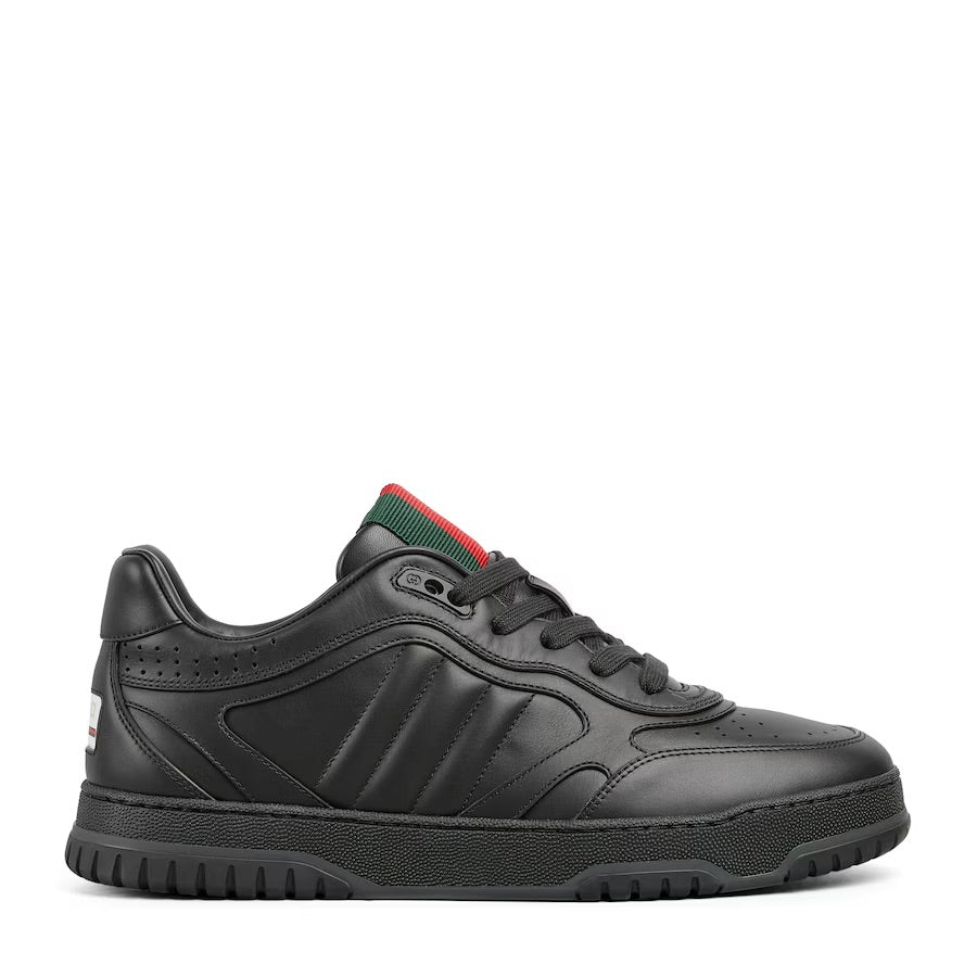 The Re-Web sees Gucci’s heritage stripes as a bold statement detail on a contemporary silhouette. This pair is crafted from black leather. Defined by multiple signature details, this new sneaker takes center stage with the bold green and red Web tongue.