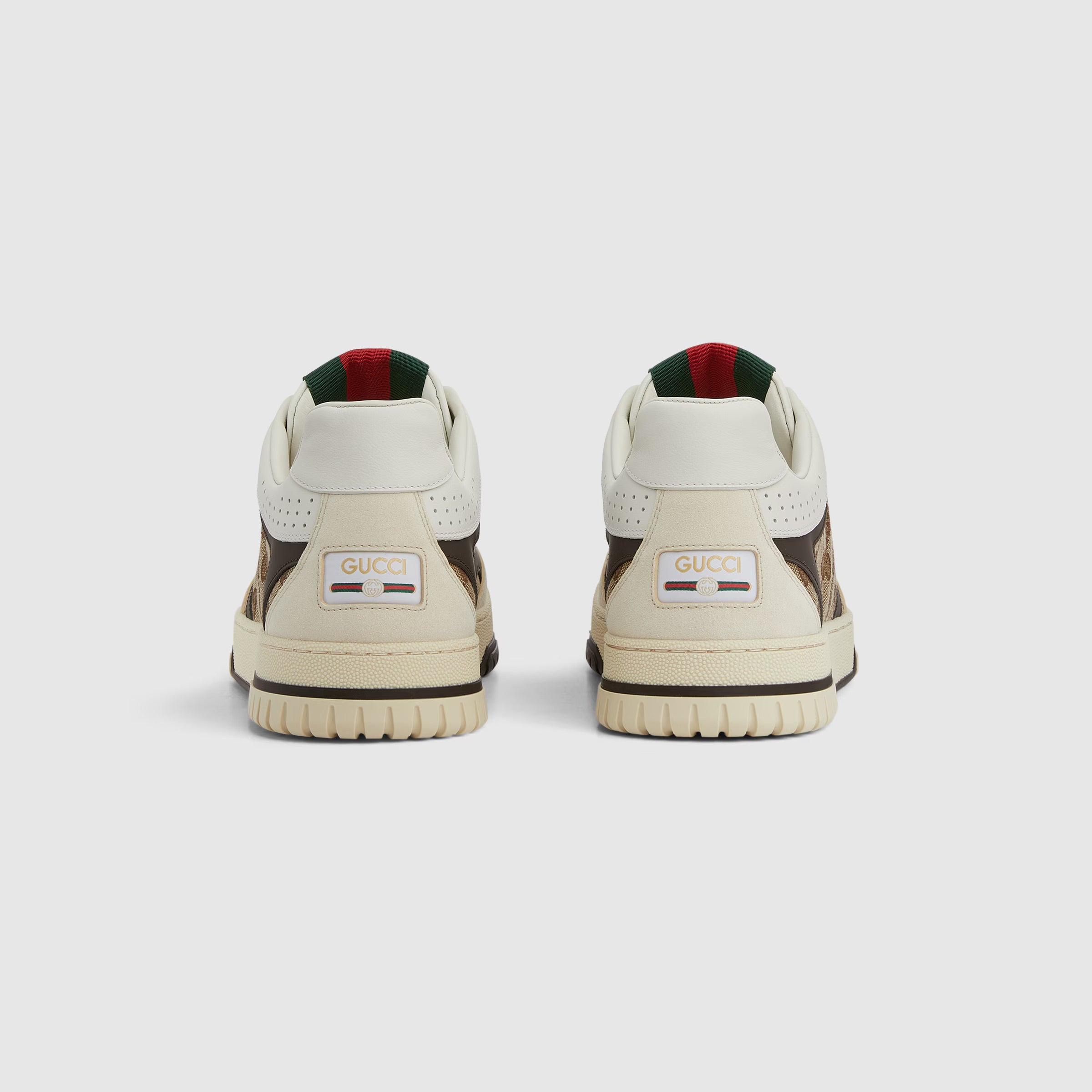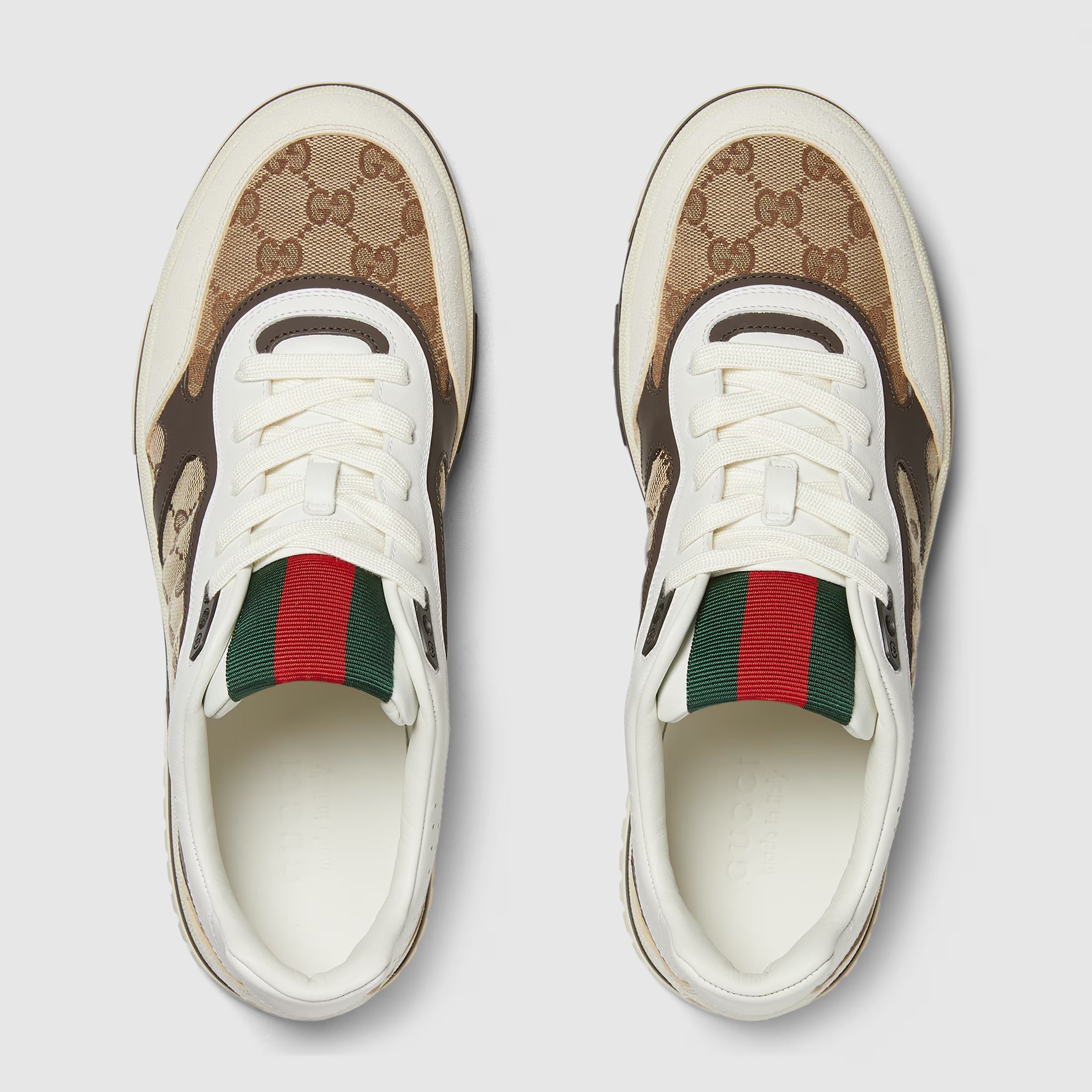 The Re-Web sees Gucci’s heritage stripes as a bold statement detail on a contemporary silhouette. Defined by iconic details, this pair of sneakers is crafted from beige and ebony Original GG canvas and completed with green and red Web tongue.