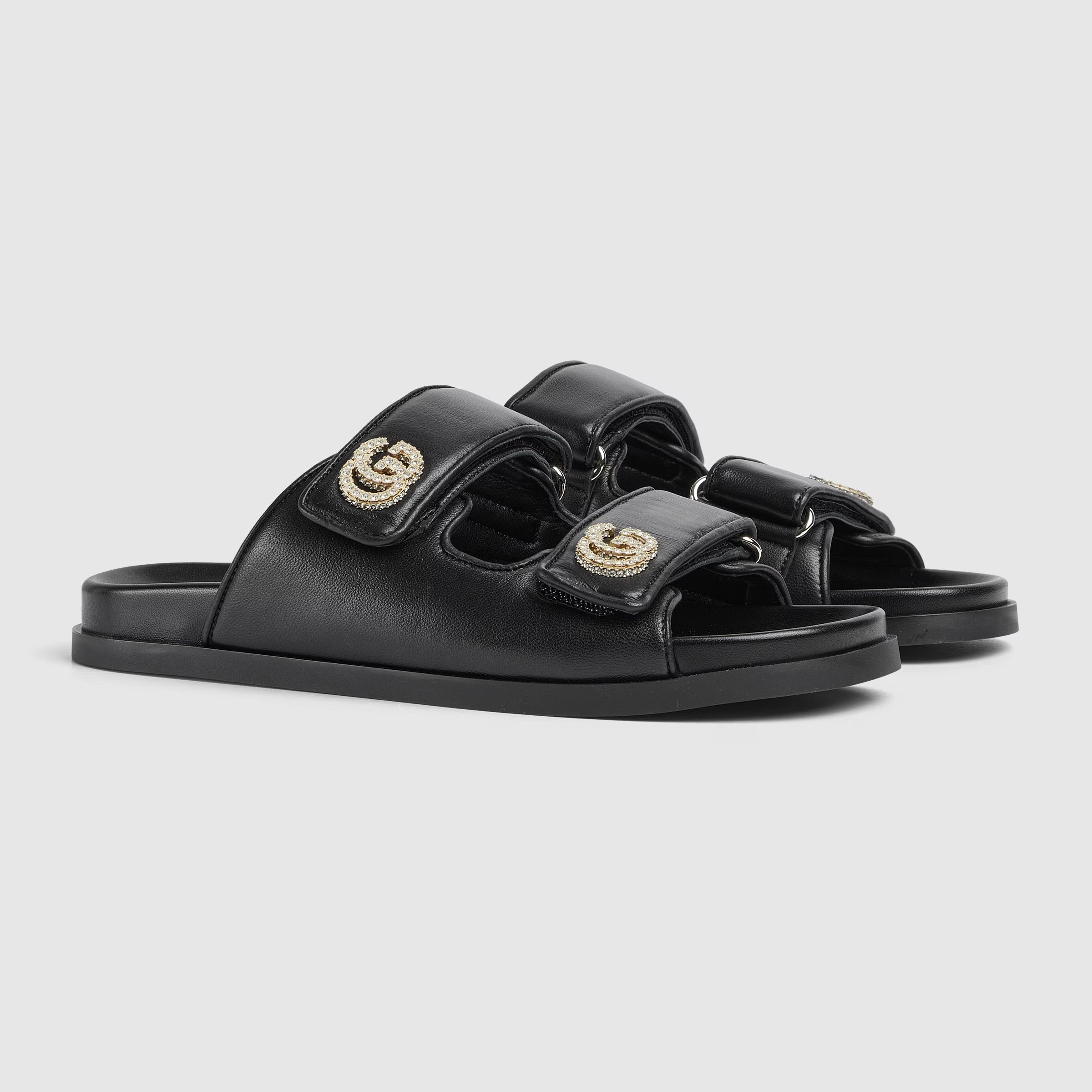 Crafted in leather, these sandals feature the unmistakable Double G logo adorned with light gold-toned hardware, adding a touch of refined elegance.