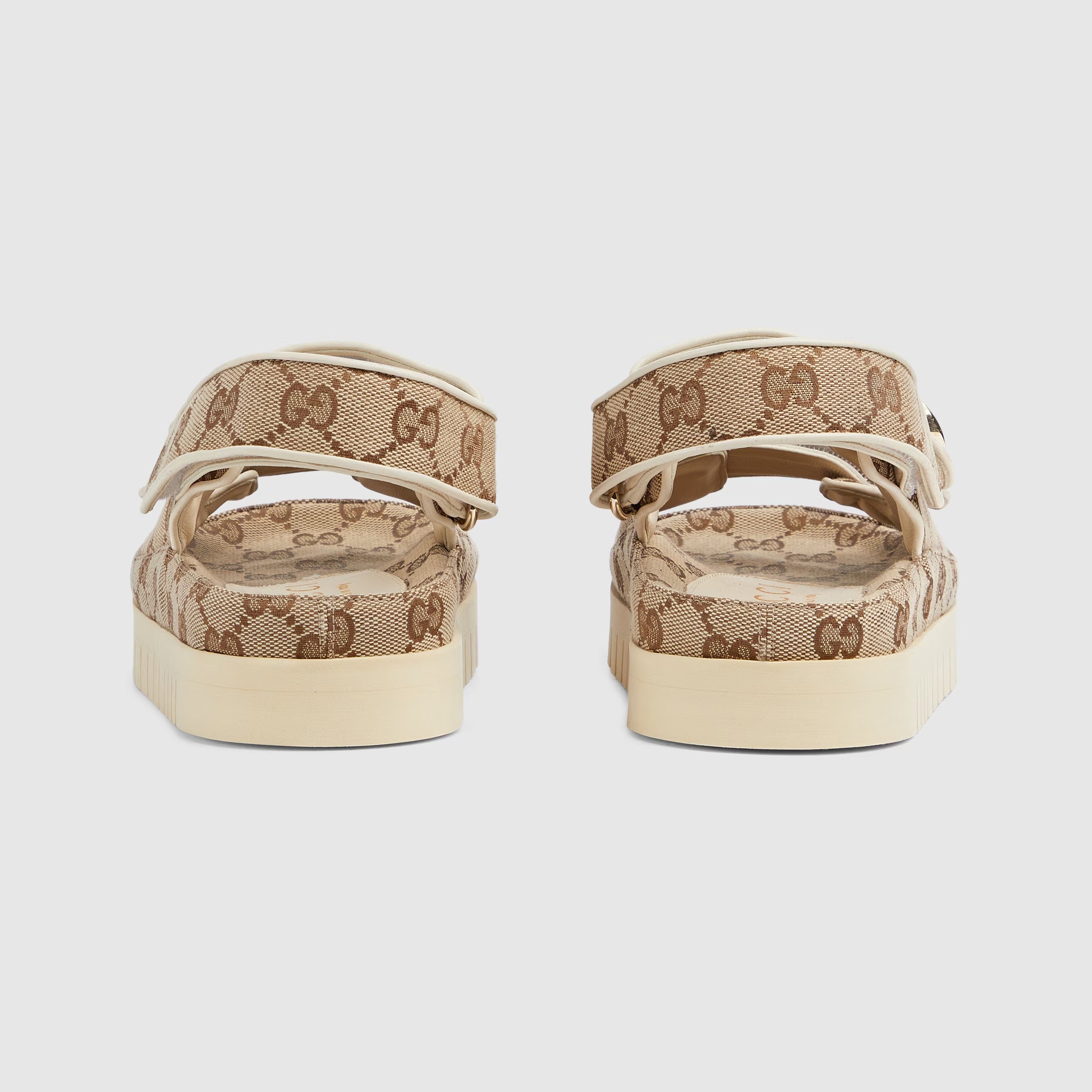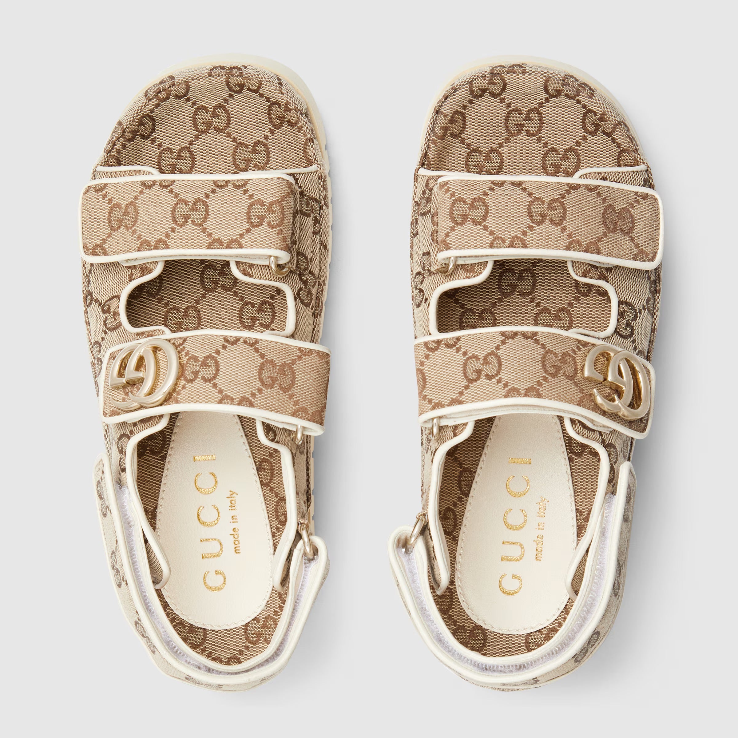 Gucci's contemporary narrative explores a unique blend of traditional elements and the much-loved symbols of the House. This pair of sandals is defined by the beloved Double G hardware, adding a subtle logo feel, mixed with the versatility of the Velcro straps.