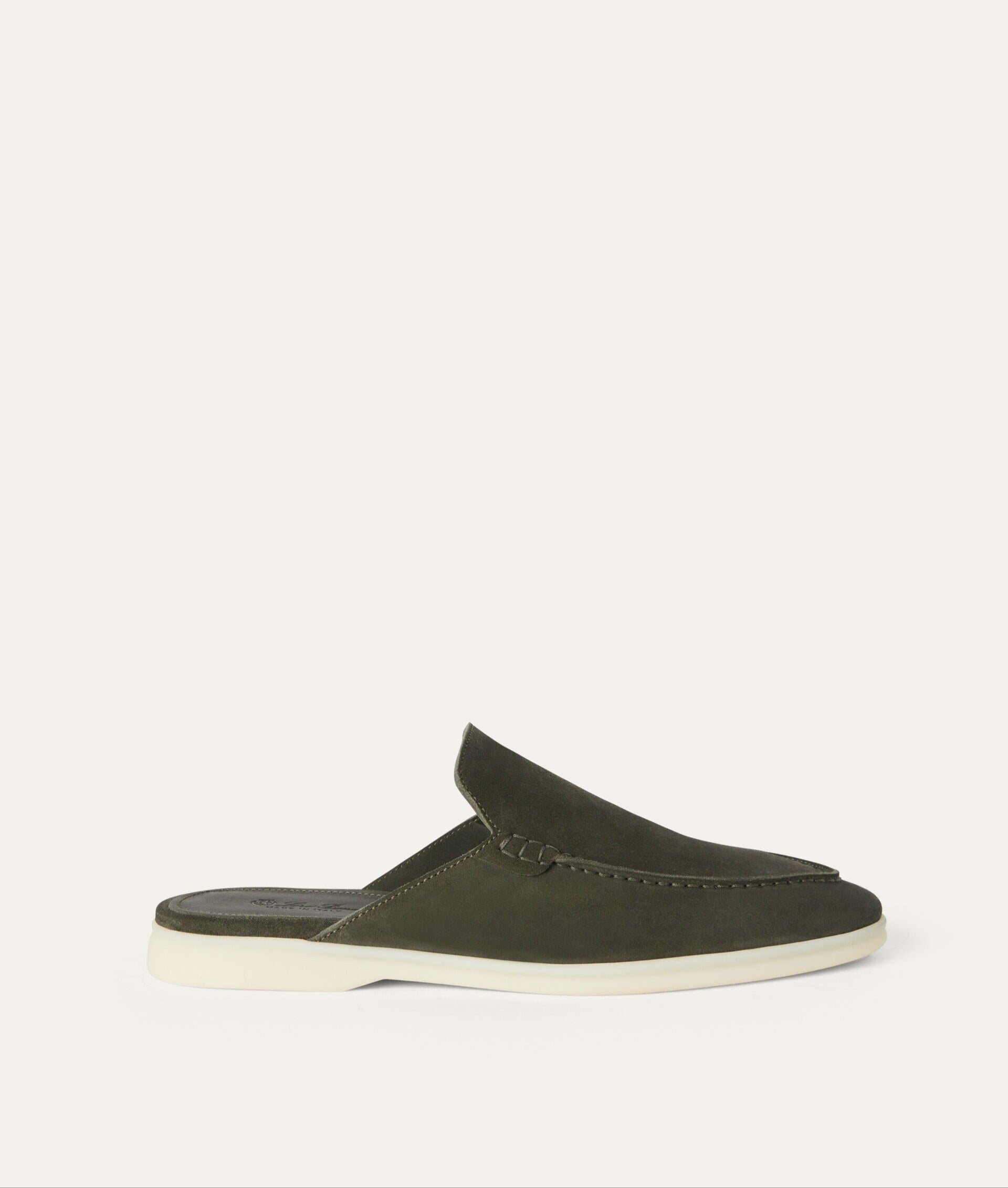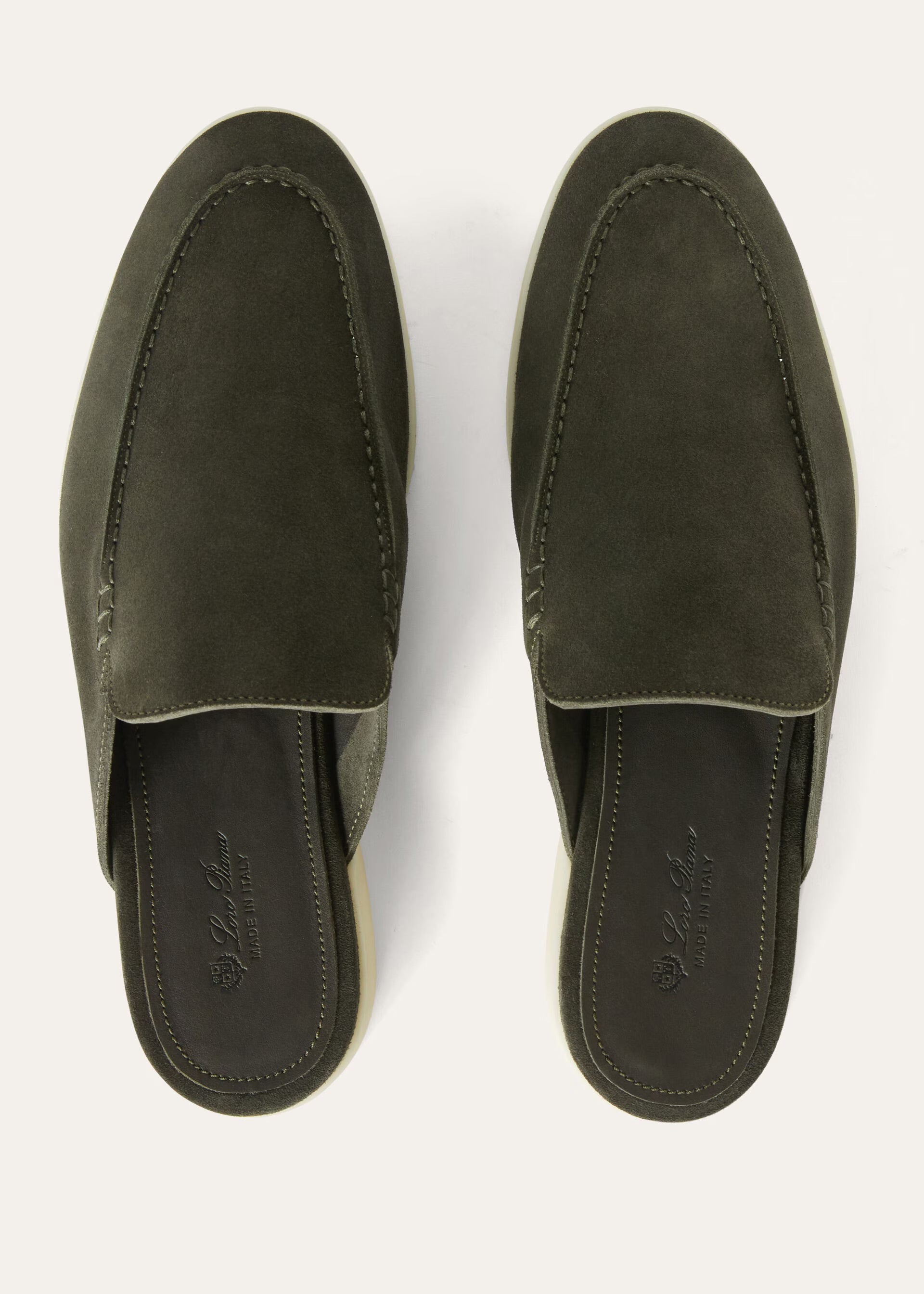 Slipper version of the iconic Summer Walk loafer made from unlined suede. They feature a dedicated space on the heels where you can write your name — a hallmark feature of Loro Piana’s sportswear shoes, inspired by the world of sailing.