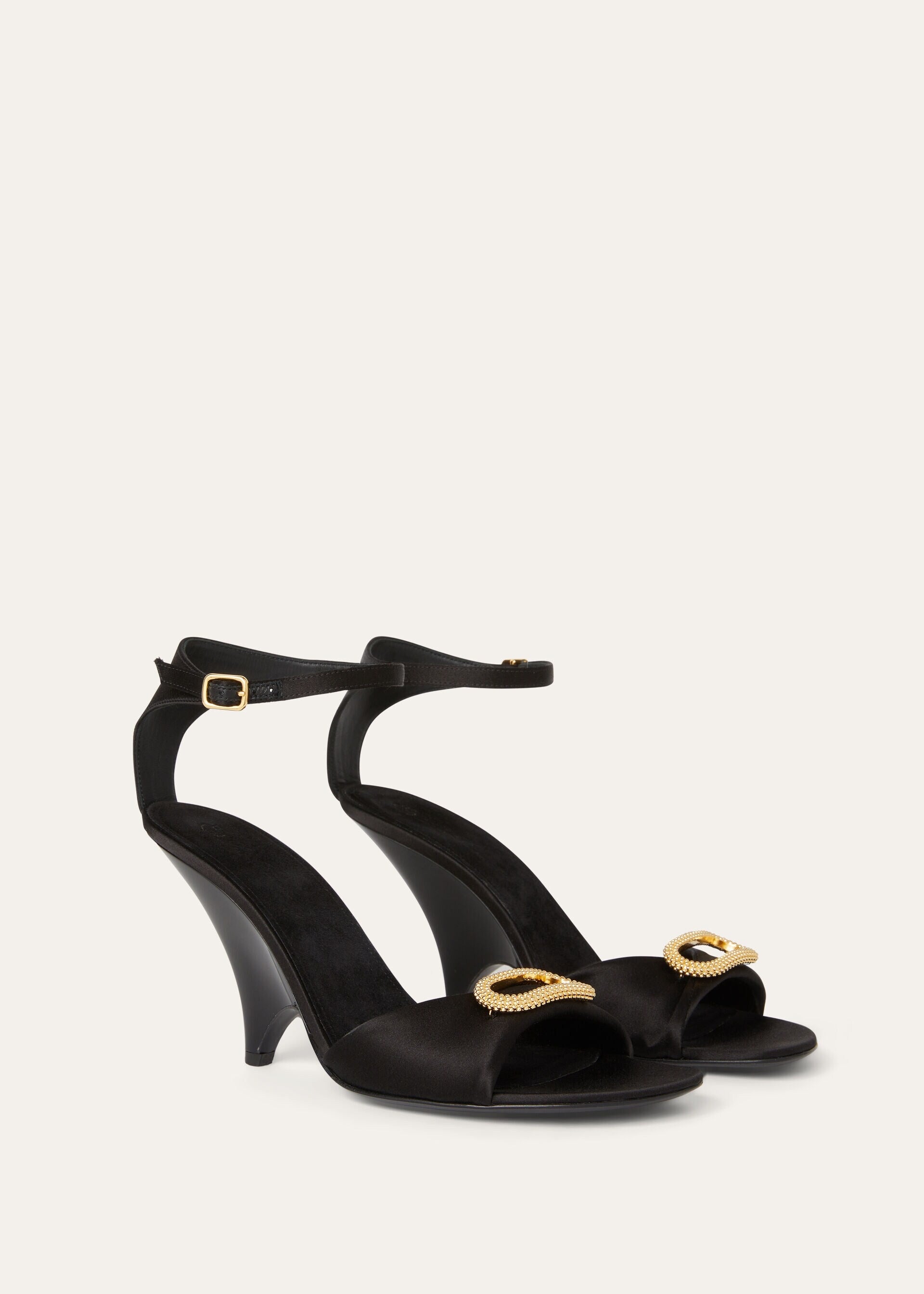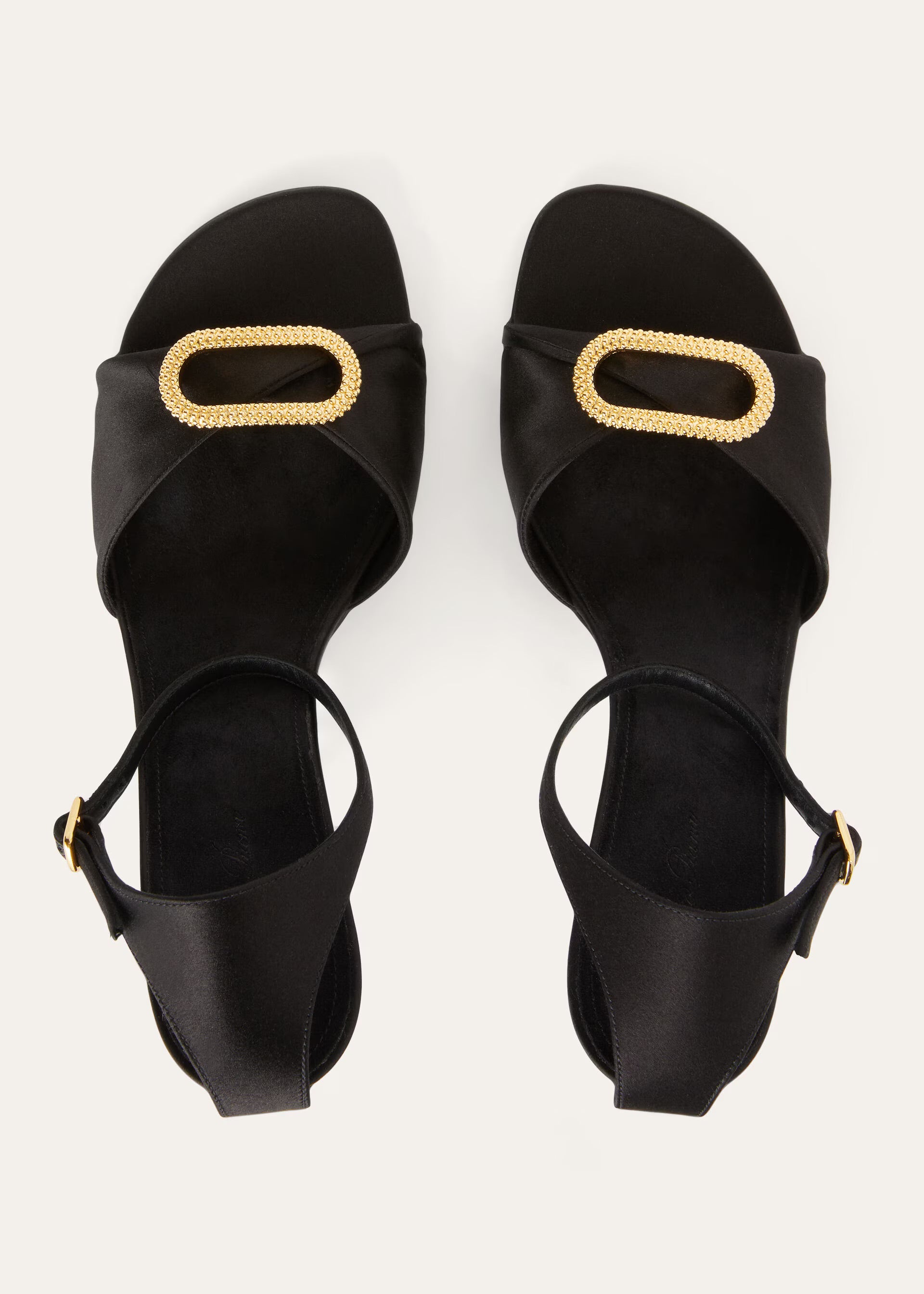 Crafted to catch the light and the eye, the Olympia heeled sandal lifts any ensemble with a note of refined glamour. The lustrous satin fabric caresses the foot with a sophisticated touch, while the bejeweled buckle adds an eye-catching element. The ankle strap and distinctively contoured wedge heel create a silhouette that is both graceful and grounded.