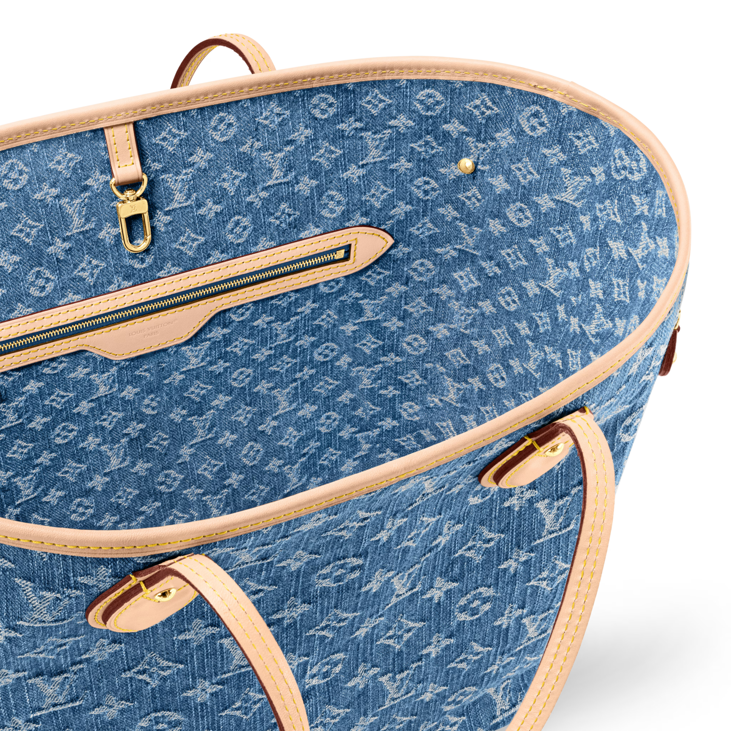 Ideal for city commutes and beyond, the iconic Neverfull MM tote is updated for the season in timeless Monogram denim. Detailed with signature natural cowhide leather trimmings, it has adjustable side laces to cinch the silhouette, which is generously sized to store a 13” laptop. The interior is fitted with multiple pockets, including a removable zipped pouch.