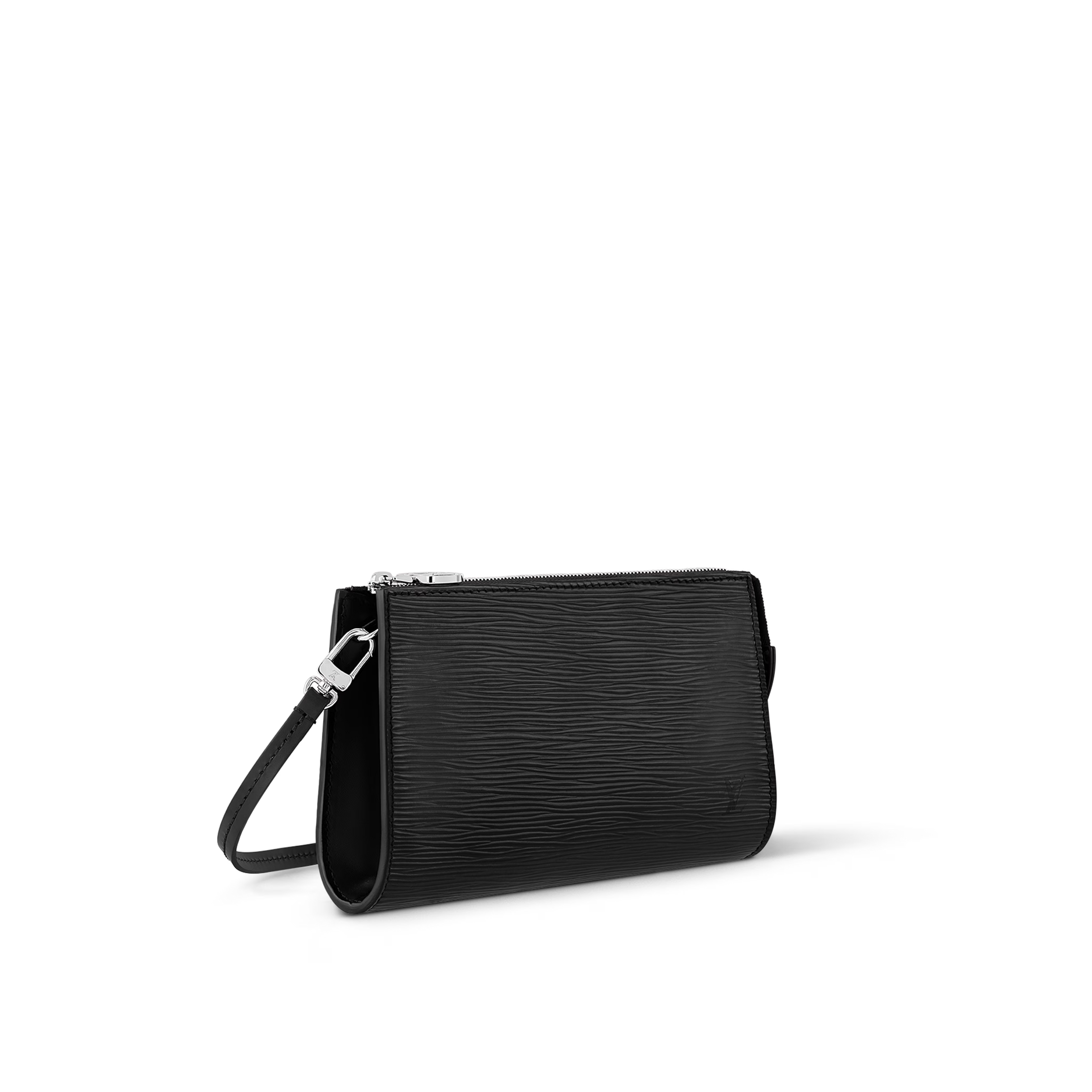The Pochette Accessoires is reinterpreted in Louis Vuitton's emblematic Epi leather. This iconic design is notable for its neat horizontal silhouette, which gives it a subtle vintage look. Thanks to the removable leather strap, it can be carried as a shoulder bag or styled as a clutch. The secure zip closure features a distinctive LV Circle zip pull.