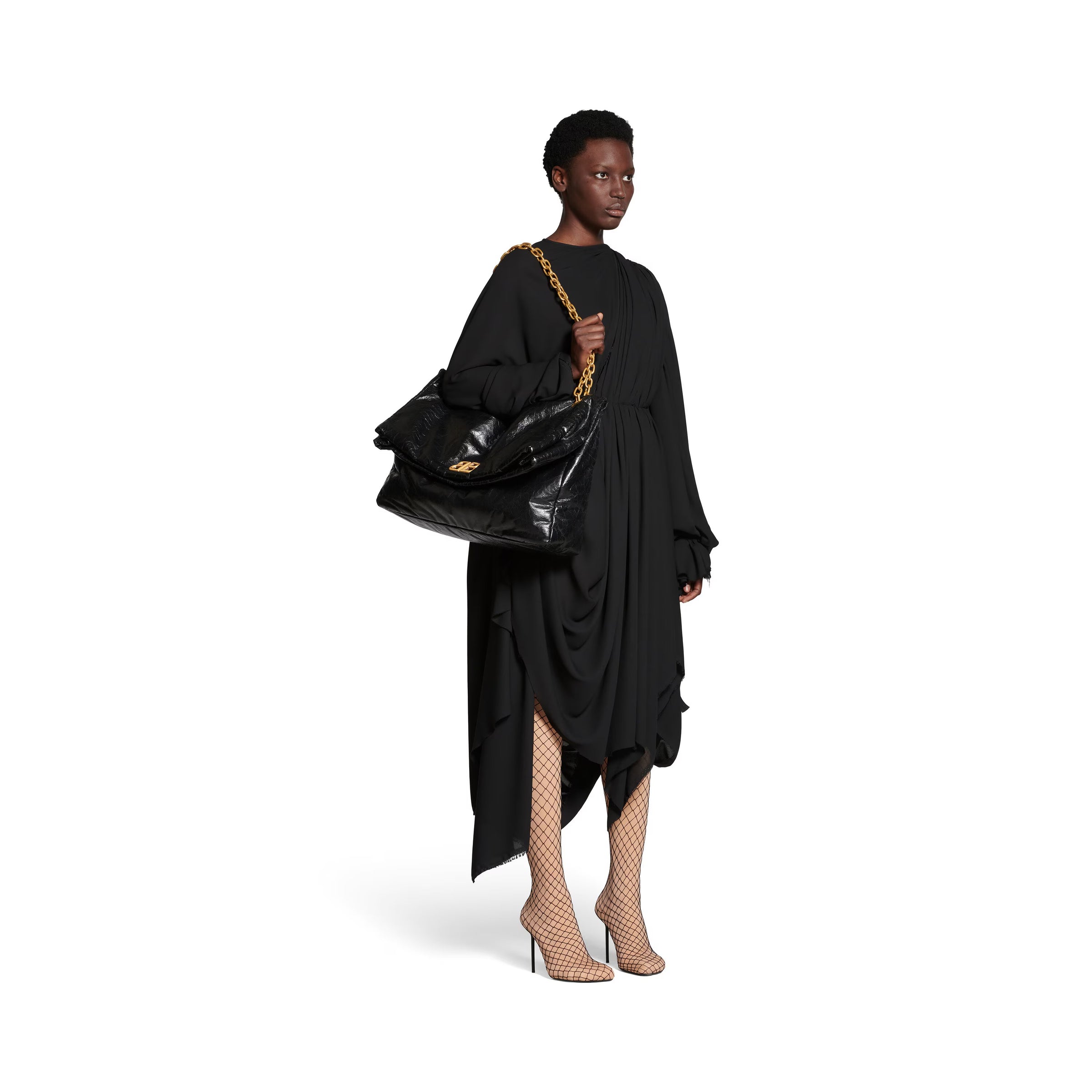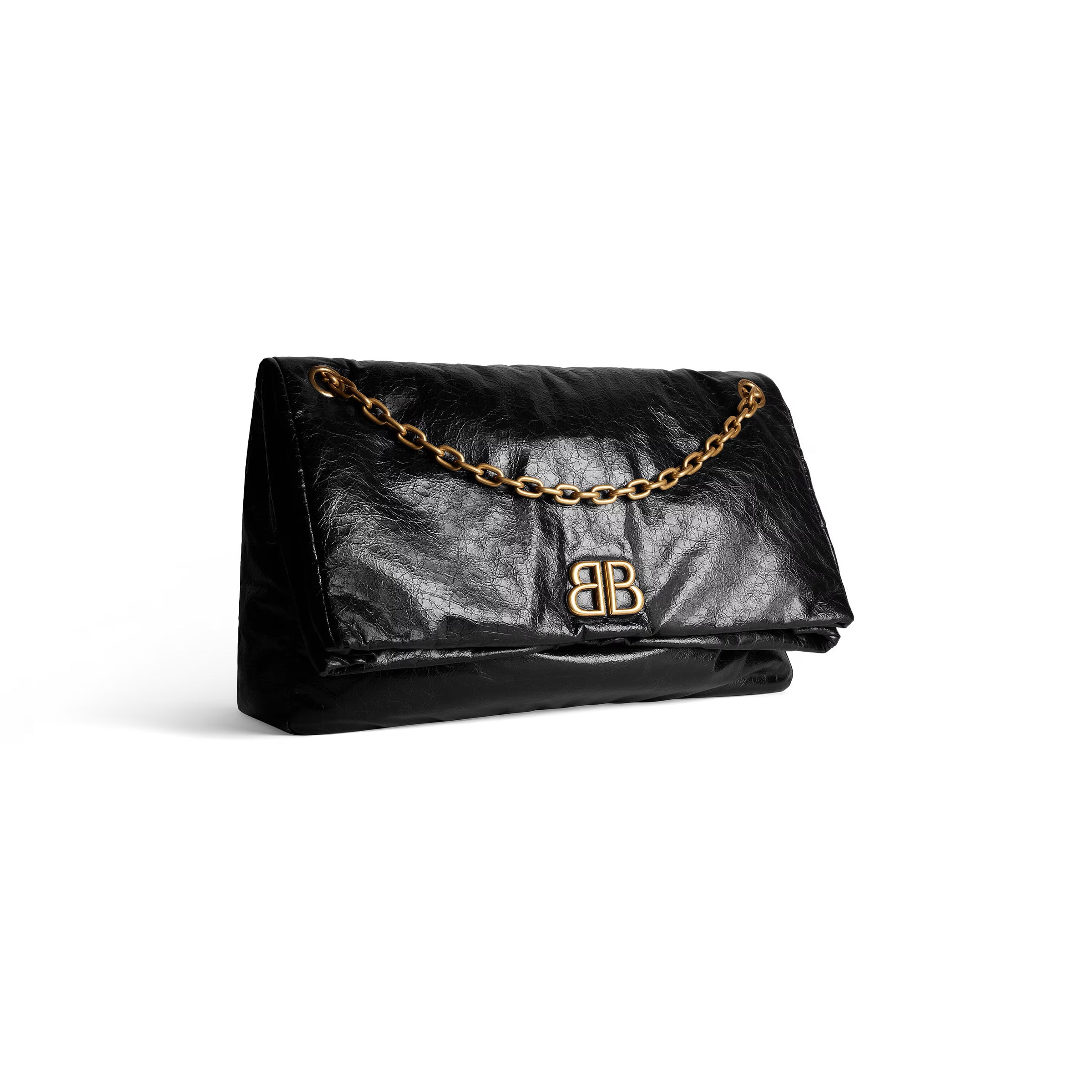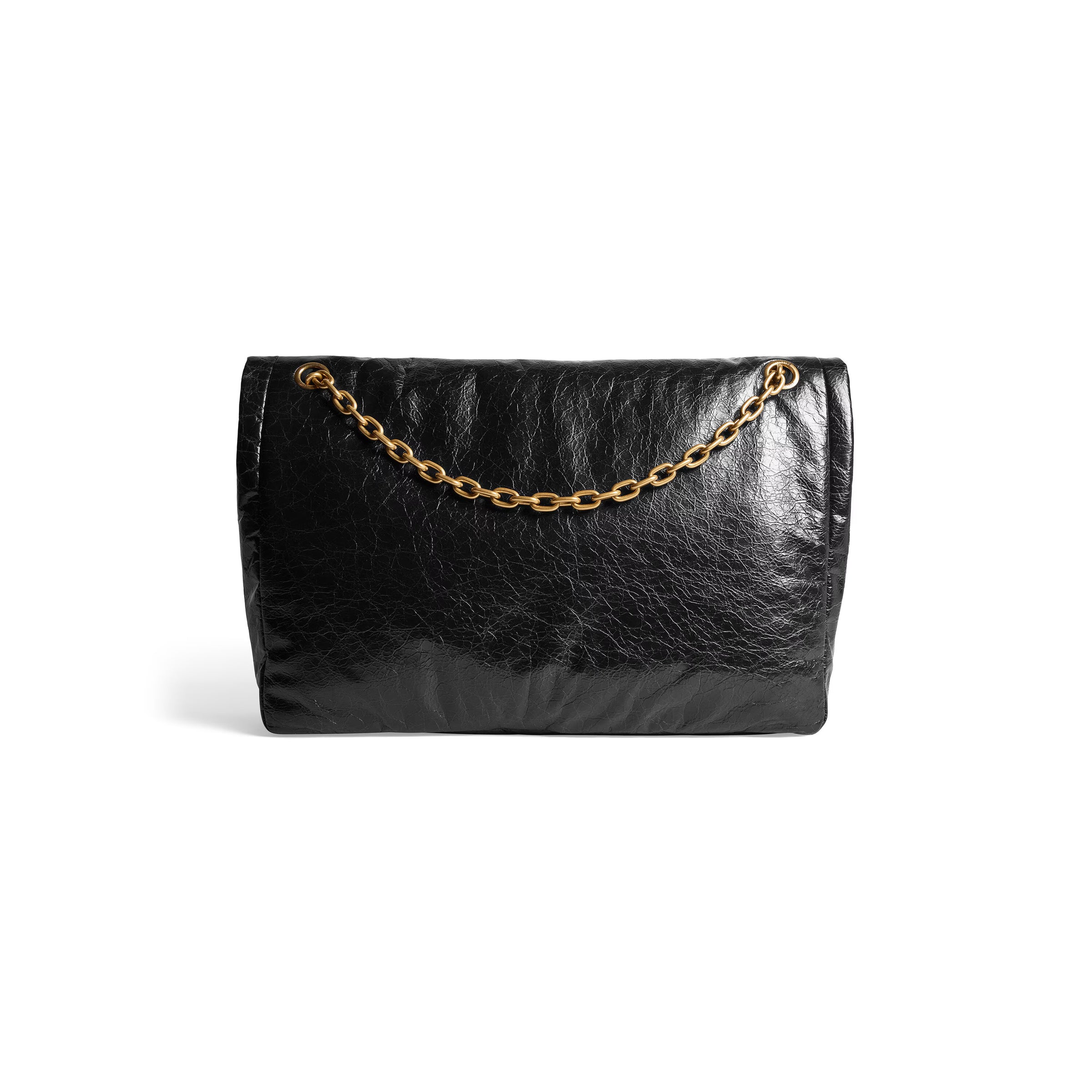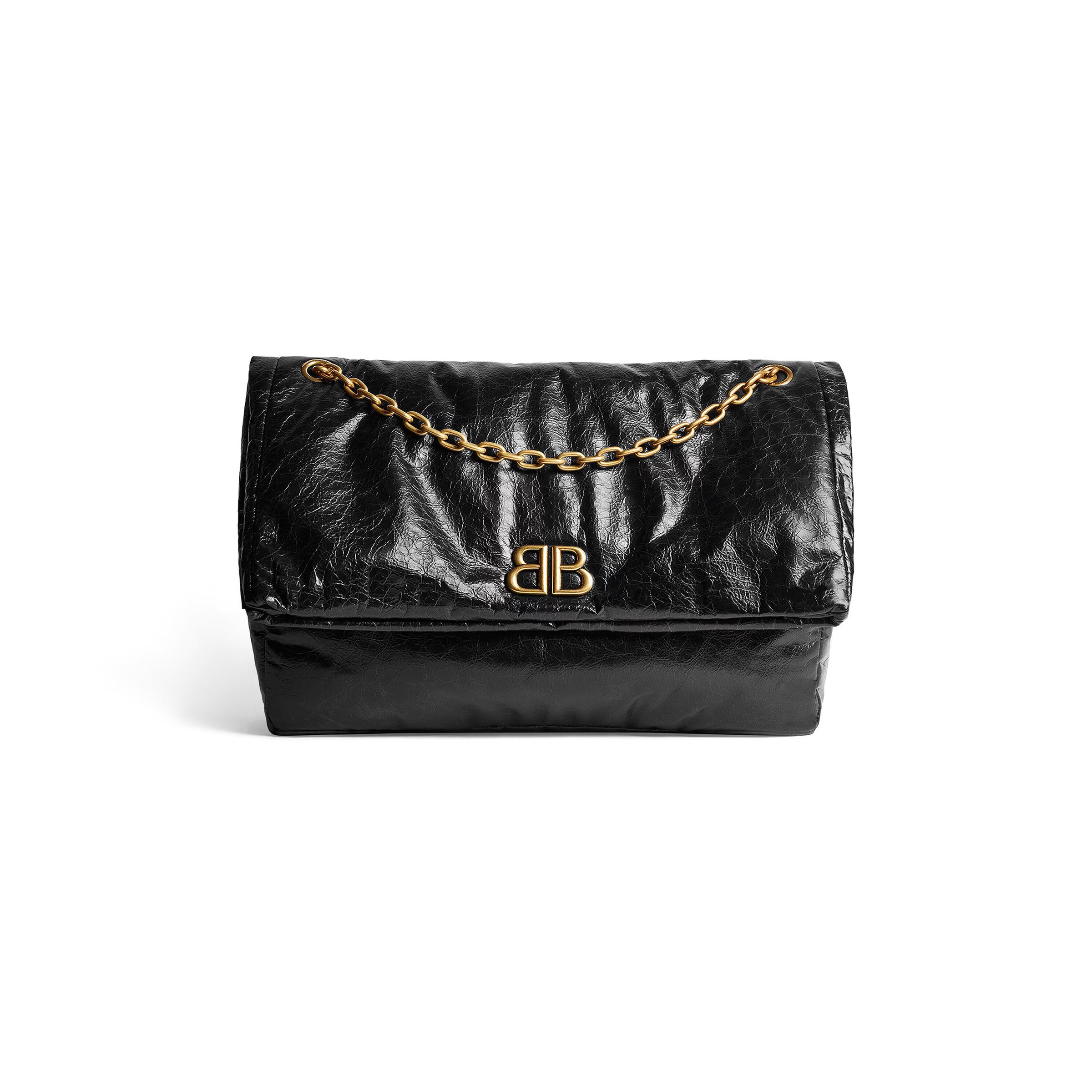 Monaco Large Chain Bag in black Arena calfskin with aged-gold hardware is from the look 13 of the Balenciaga’s Winter 23 Collection.