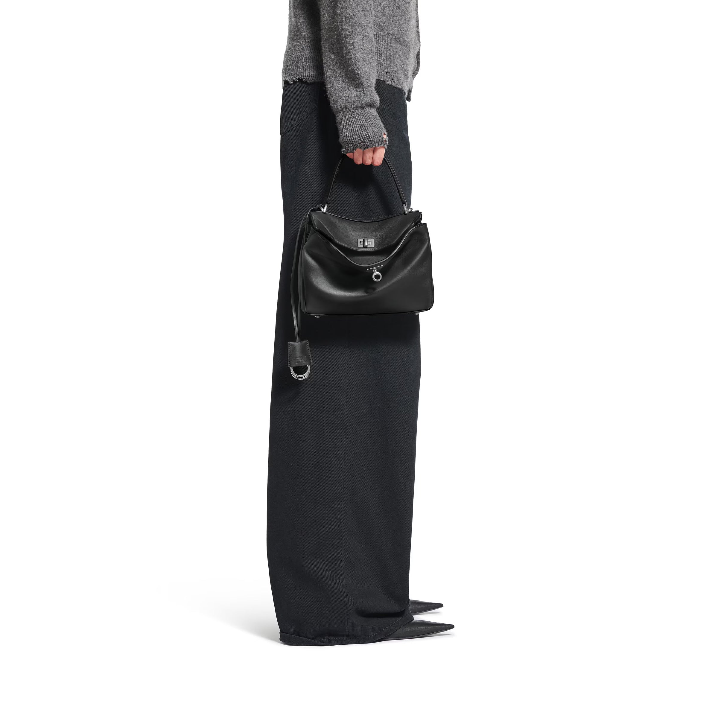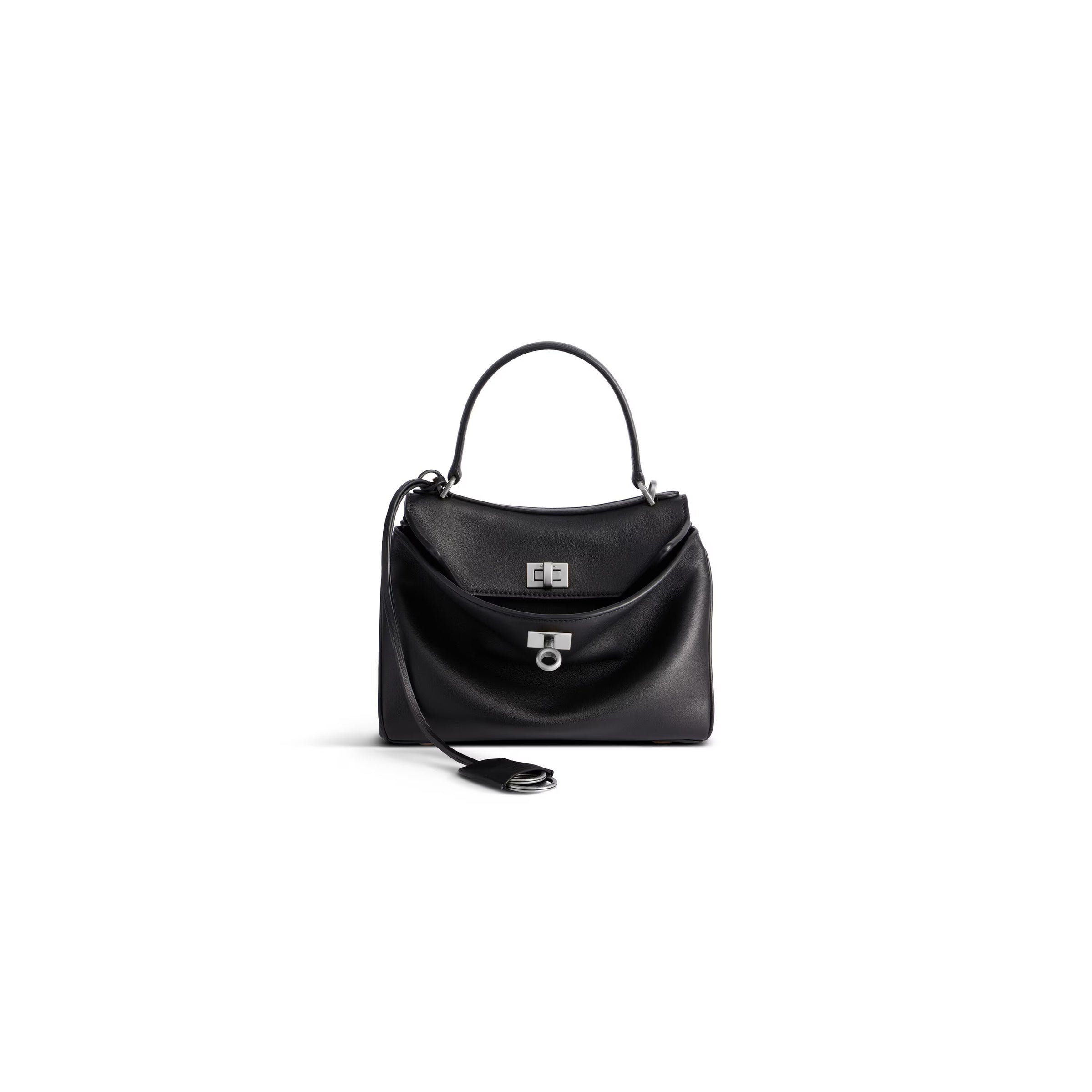 Rodeo Mini Handbag in black smooth calfskin, aged-silver hardware