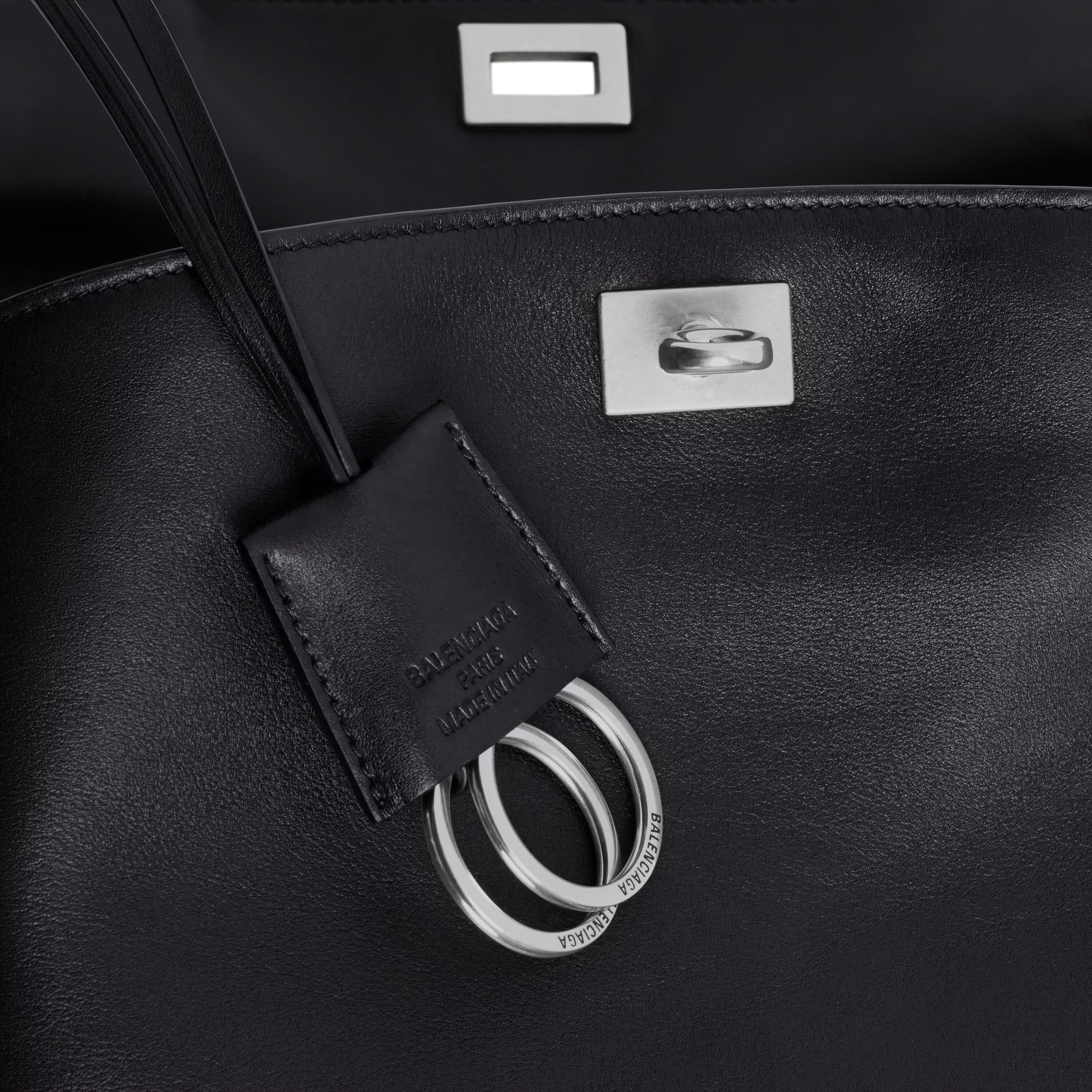 • Removable leather key holder with two split rings